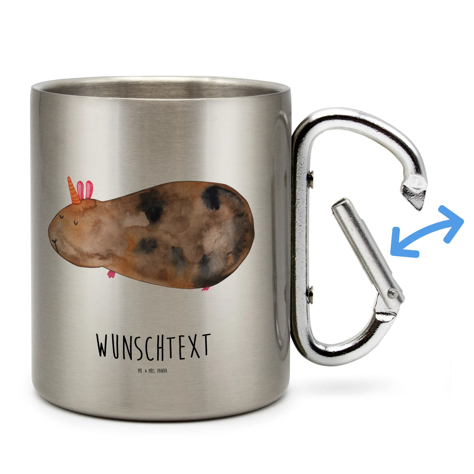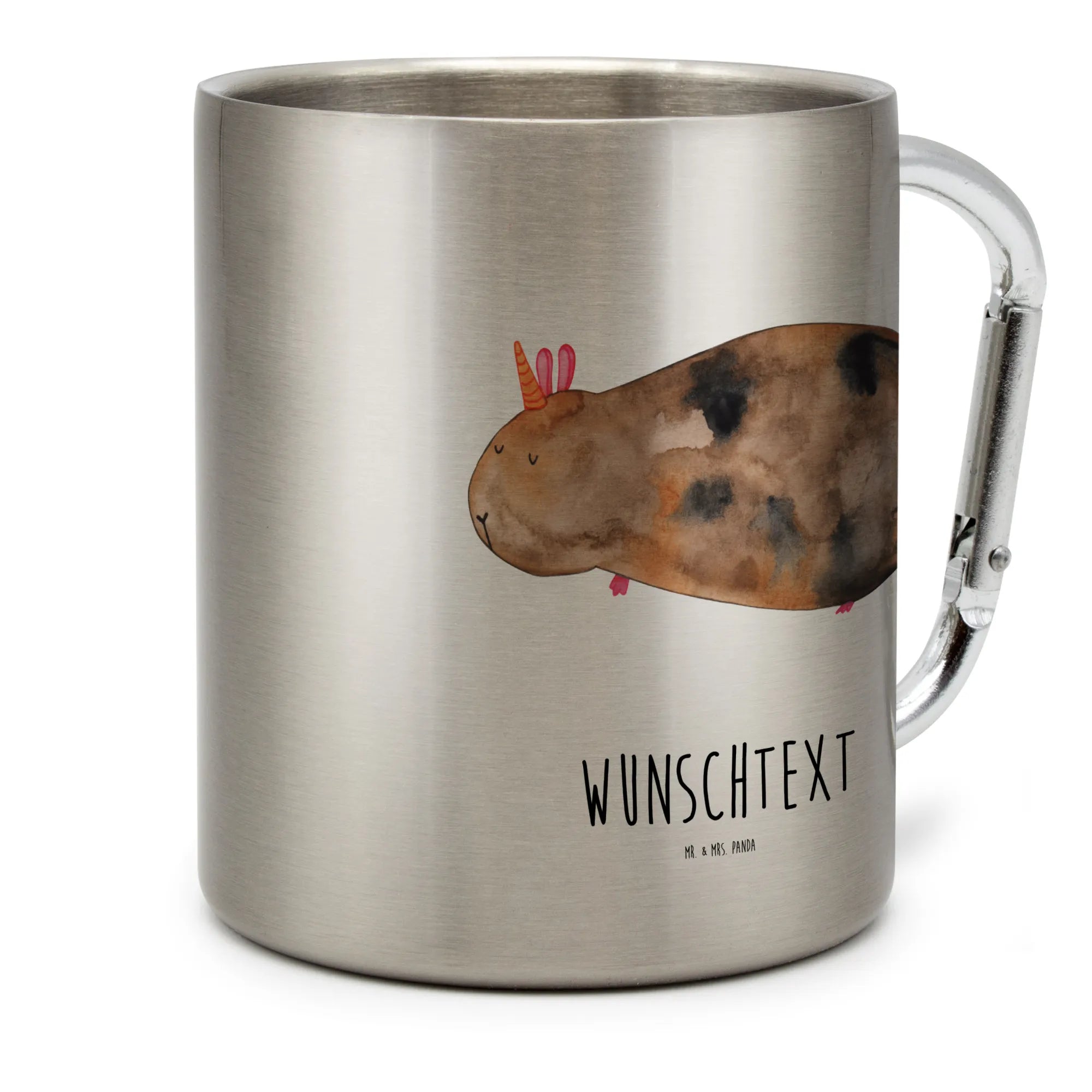 Der personalisierte Edelstahlbecher von Mr. & Mrs. Panda ist der perfekte Begleiter für alle, die gerne unterwegs sind! Dieser stabile Becher hat eine Größe von 90 mm im Durchmesser und 80 mm in der Höhe, ideal für deinen Kaffee, Tee oder andere Getränke. Mit einer Füllmenge von 330 ml bietet er genügend Platz für deine Lieblingsgetränke, egal ob heiß oder kalt. Der Becher wird aus langlebigem, rostfreiem Edelstahl gefertigt und hält deine Getränke lange auf der gewünschten Temperatur. Ein echtes Highlight ist die Möglichkeit, den Becher mit deinem persönlichen Namen oder einem witzigen Spruch zu gestalten. Mit nur 145 g ist er super leicht und damit perfekt für Camping, Reisen oder einfach einen entspannenden Tag im Park. Bitte beachte, dass er nicht spülmaschinenfest ist, also wasche ihn mit der Hand, um die Druckqualität zu bewahren und verhindere Wasseransammlungen im Inneren durch die Karabinerbefestigung.
