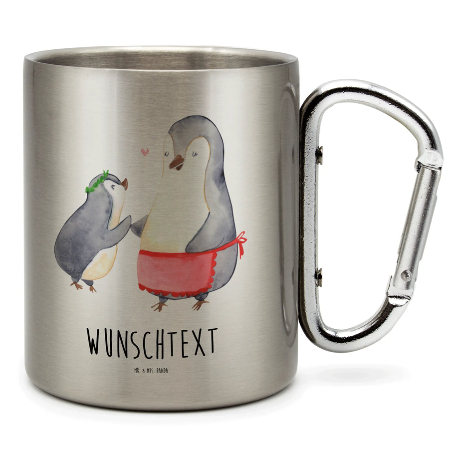 Personalisierter Edelstahlbecher Pinguin mit Kind