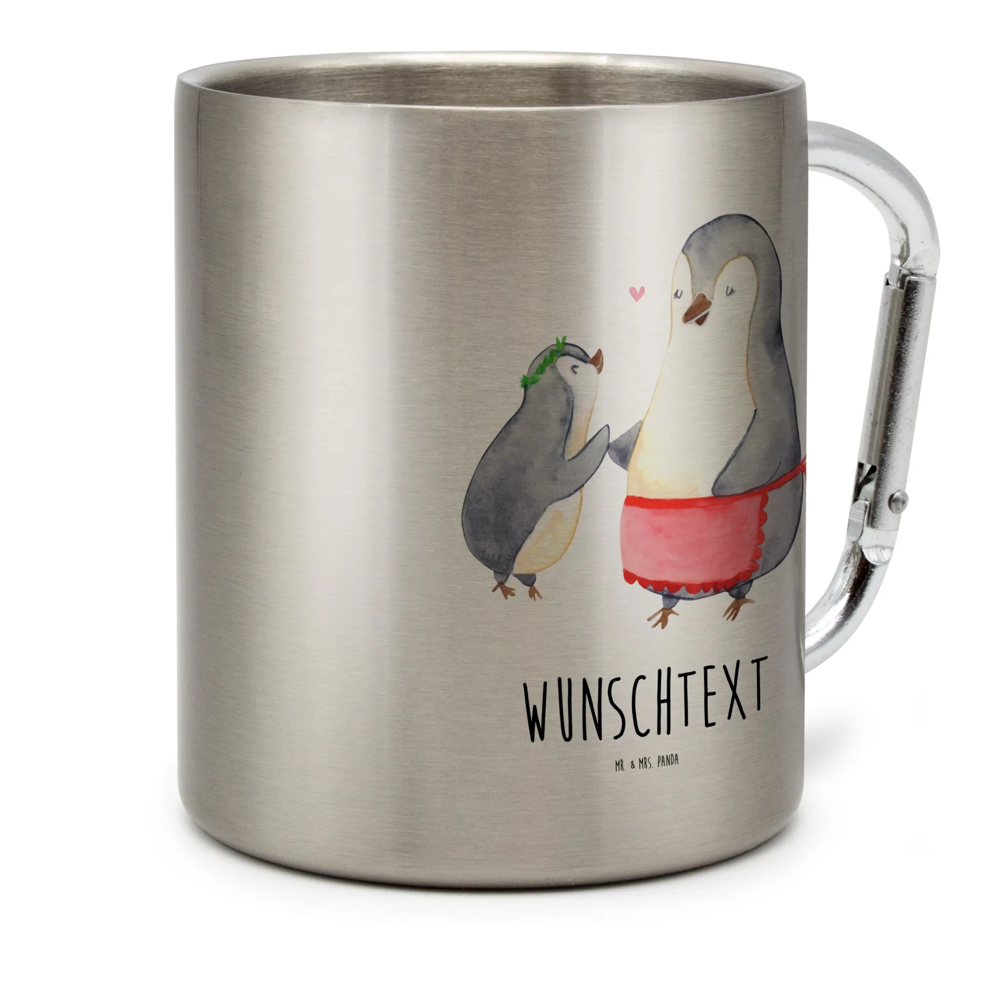 Dank der leichten Bauweise ist er super praktisch im Alltag. Der integrierte Karabinerhaken ermöglicht es dir, ihn ganz einfach an deiner Gürtelschlaufe oder deinem Rucksack zu befestigen. Dieser personalisierte Edelstahlbecher ist nicht spülmaschinenfest, aber das sanfte Handwaschen stellt sicher, dass das süße Pinguin-Motiv und der liebevolle Spruch lange Freude bereiten.