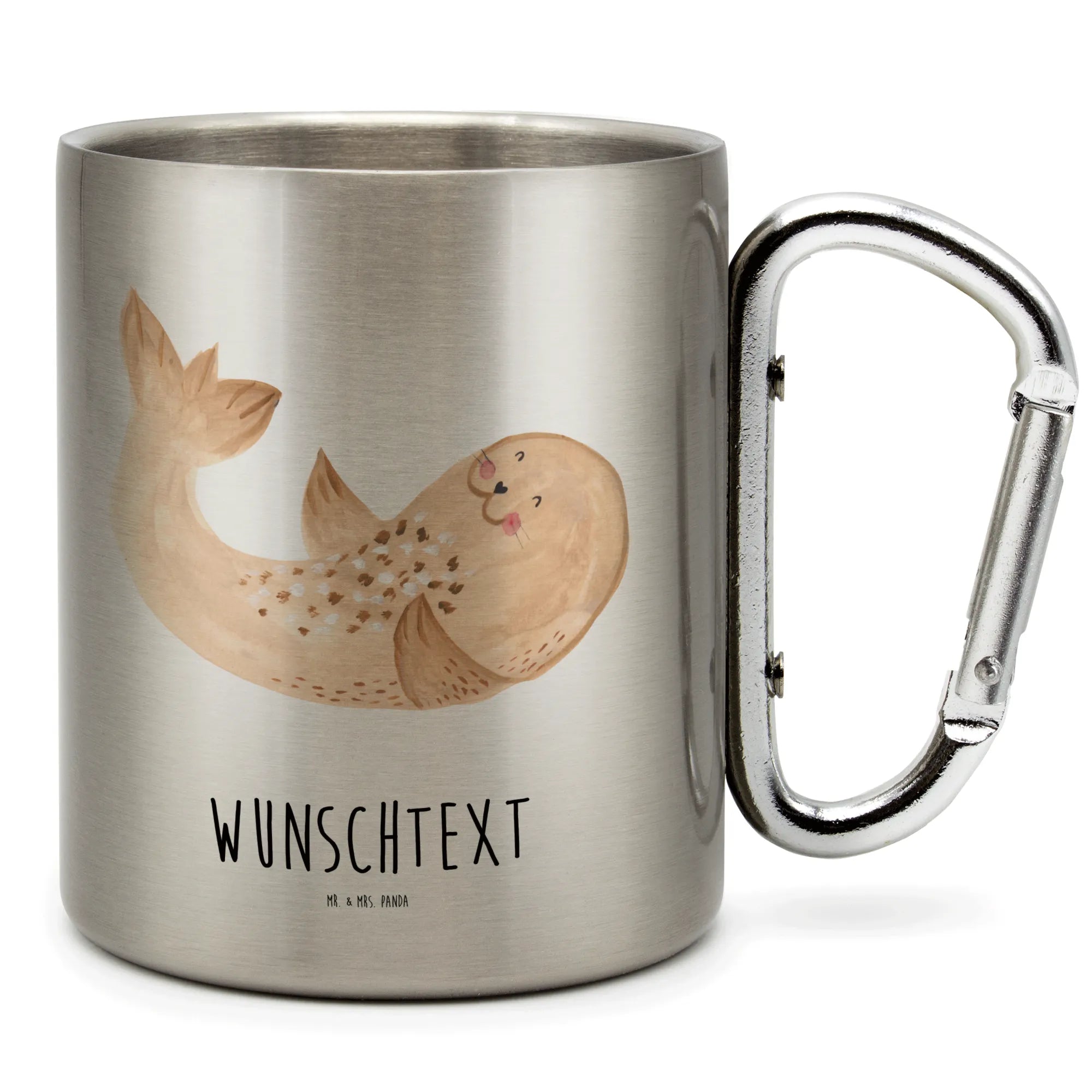 Entdecke den perfekten Begleiter für deine Abenteuer mit dem personalisierten Edelstahlbecher "Robbe liegend" von Mr. & Mrs. Panda aus der bezaubernden Small World Kollektion! Diese wunderschöne und robuste Tasse mit dem fröhlichen Robbenmotiv sorgt nicht nur für gute Laune, sondern auch für echte Stil-Statements bei jedem Schluck!