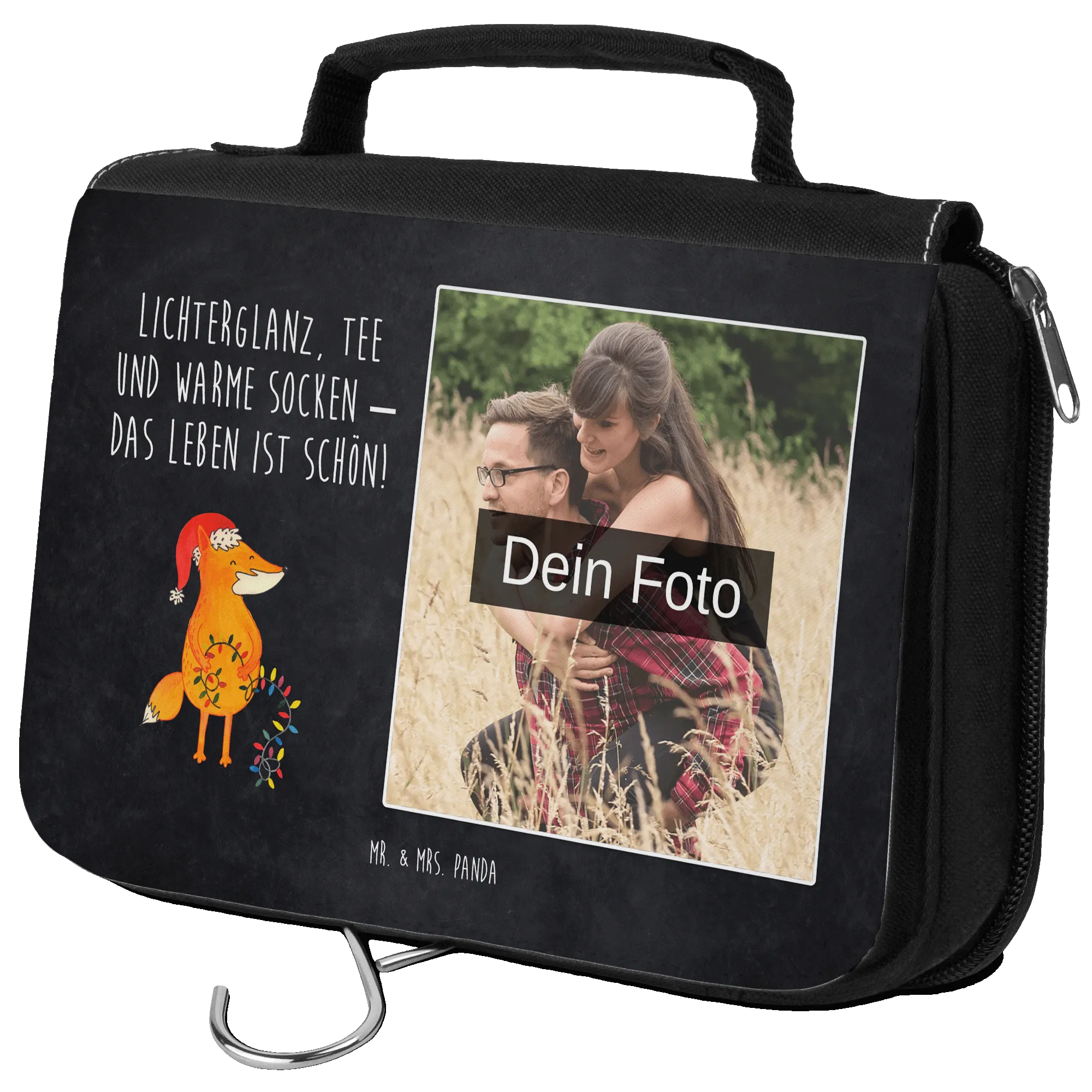 Personalisierter Foto Kulturbeutel Fuchs Weihnachten - Kreidetafel