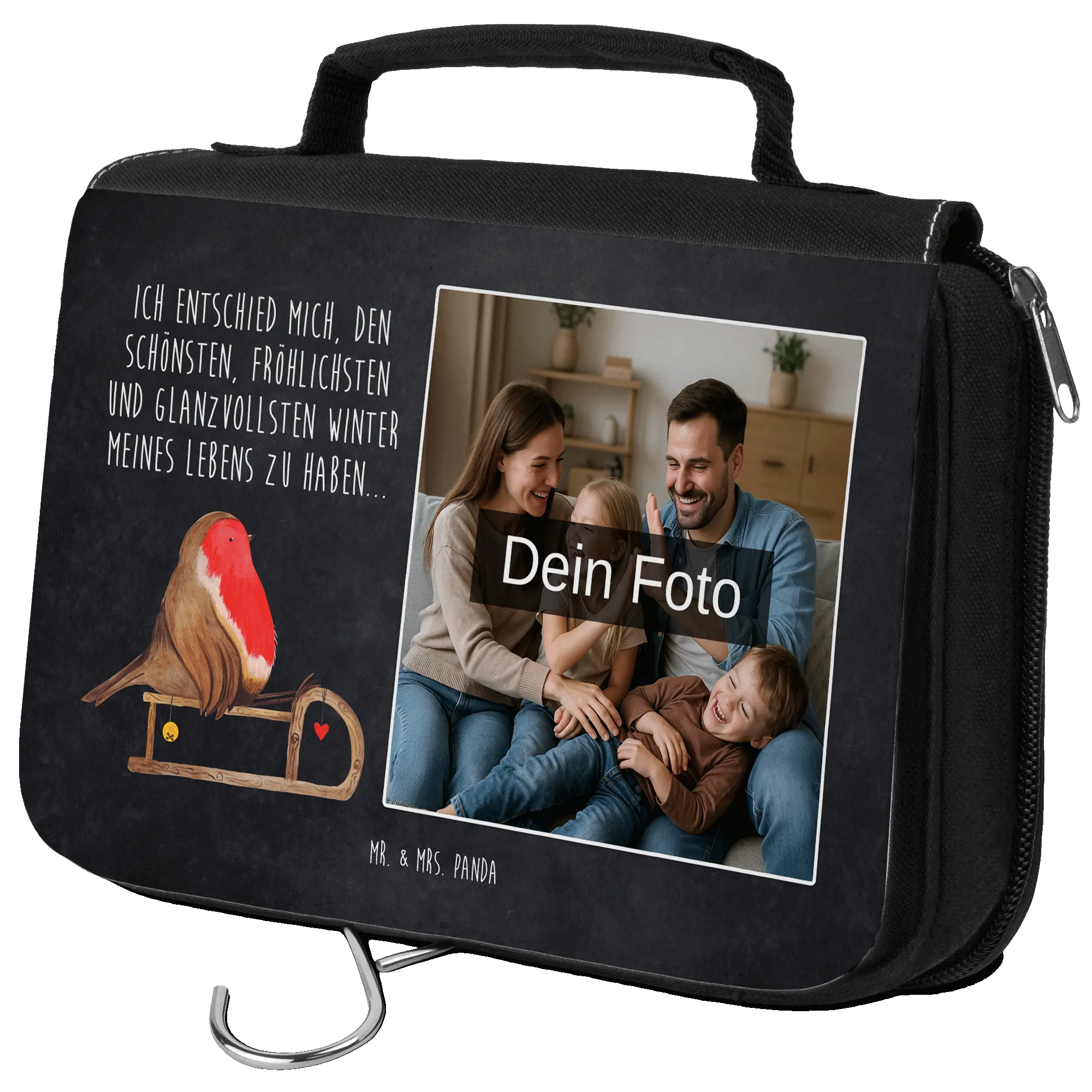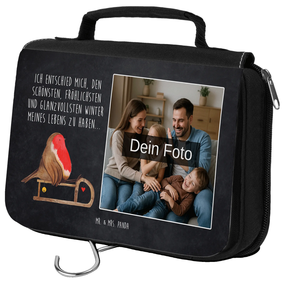Personalisierter Foto Kulturbeutel Rotkehlchen Schlitten - Kreidetafel