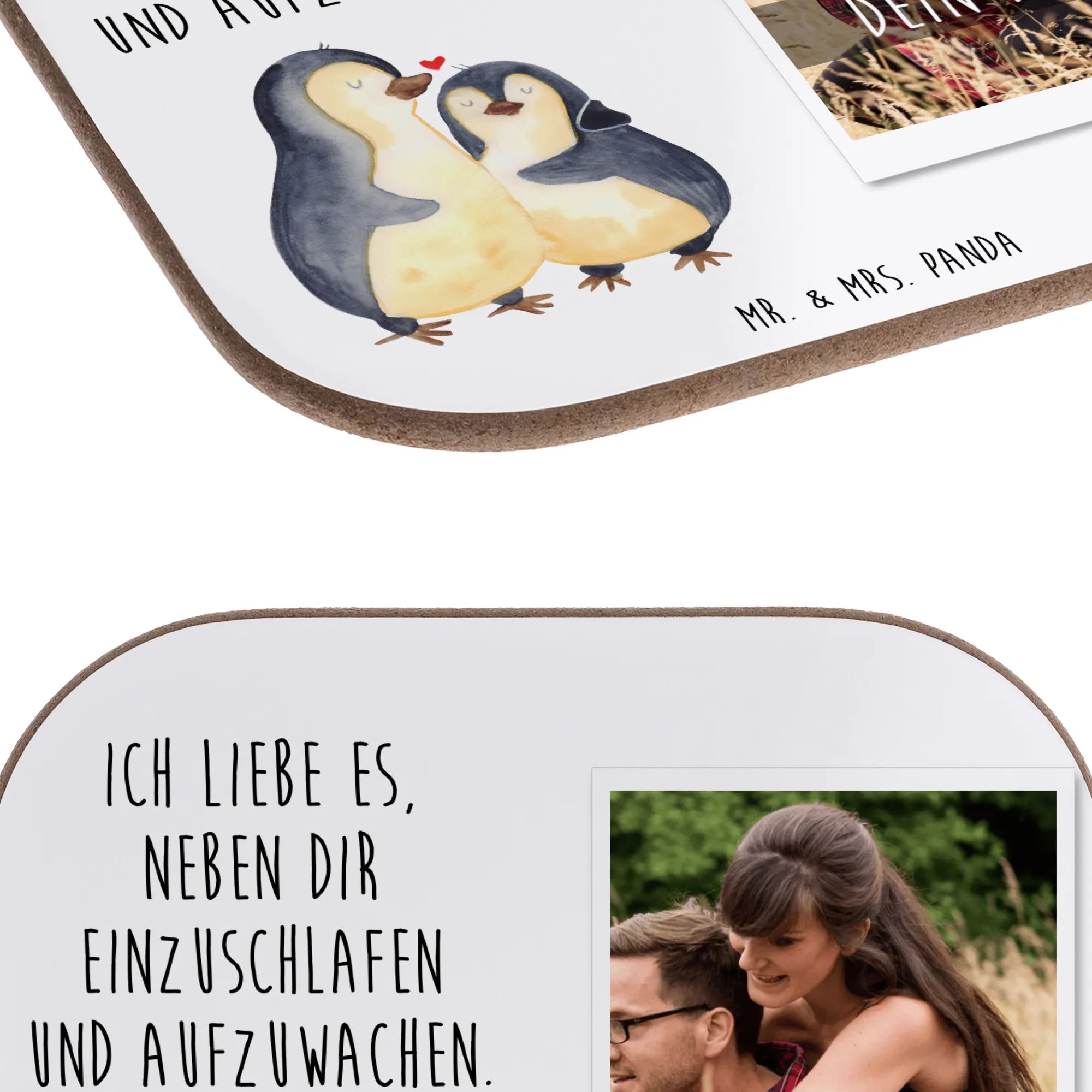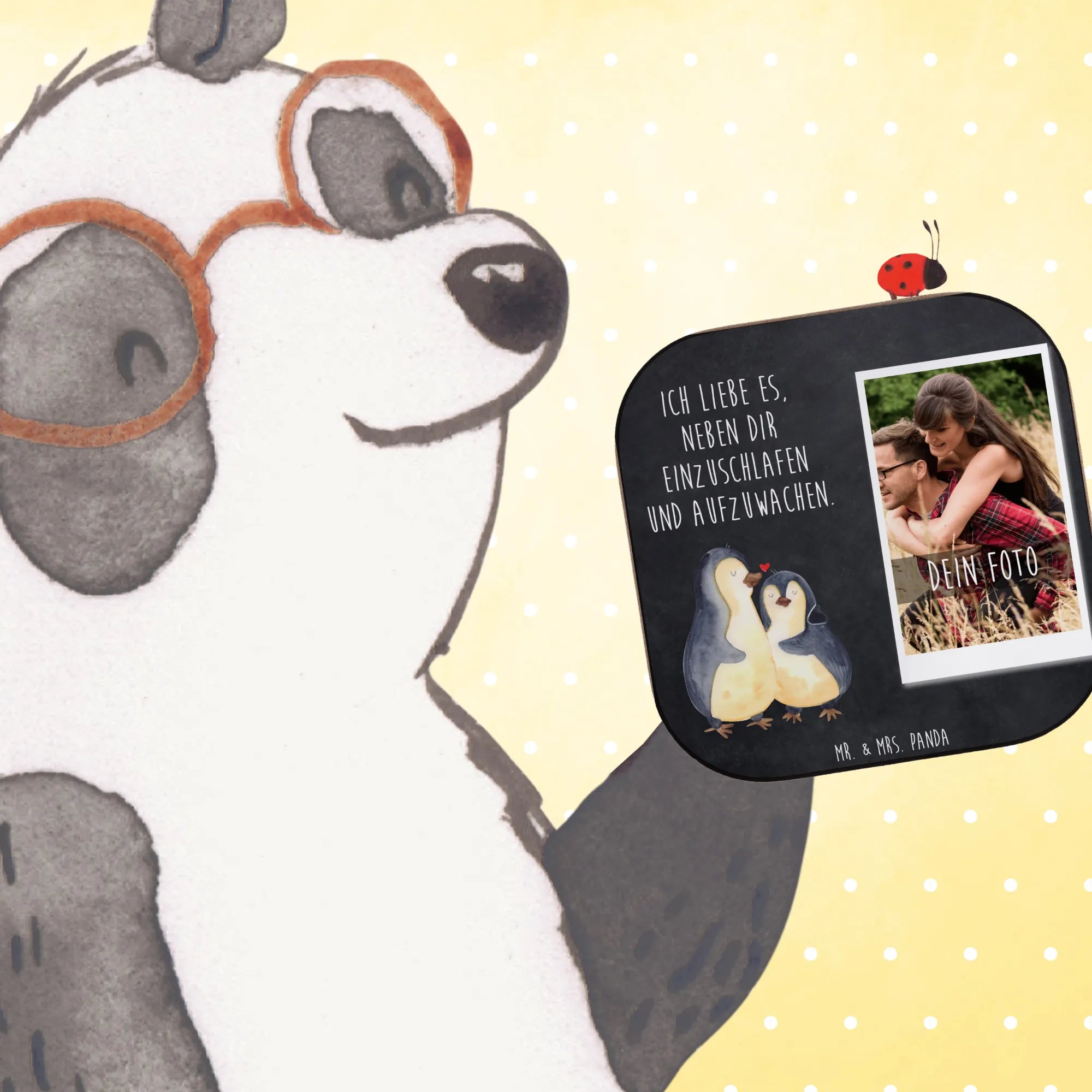 Du suchst das perfekte Geschenk für deinen Partner oder deine Partnerin? Dann sind die personalisierten Foto Untersetzer von Mr. & Mrs. Panda genau die richtige Wahl! Das liebevoll gestaltete Motiv 'Pinguine Einschlafen' zaubert jedem ein Lächeln ins Gesicht. Zwei süße Pinguine, die sich aneinander kuscheln, stehen für die innige Verbindung und die Liebe zwischen euch. Darüber schwebt ein rotes Herz, das die Zuneigung perfekt symbolisiert.