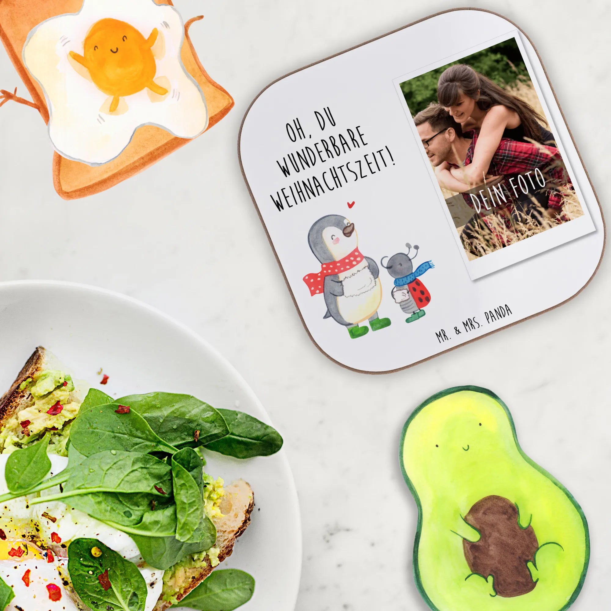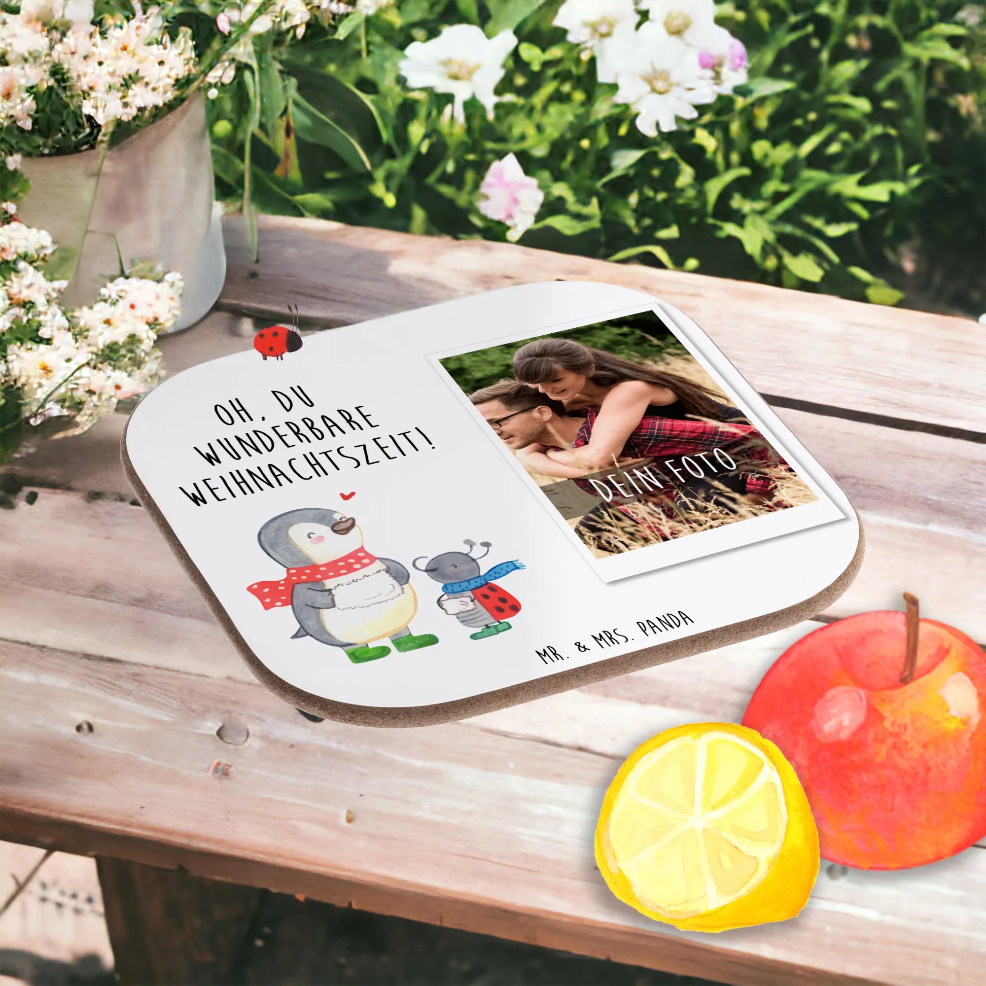 Der personalisierte Foto Untersetzer 'Smörle Winterzeit' aus der zauberhaften Winter Kollektion von Mr. & Mrs. Panda ist der perfekte Begleiter für die Weihnachtszeit! Mit einem Durchmesser von 100 mm und einer Dicke von 5 mm schützt dieser stilvolle Untersetzer nicht nur deinen Tisch vor Abdrücken und Kratzern, sondern bringt auch eine festliche Stimmung in dein Zuhause.