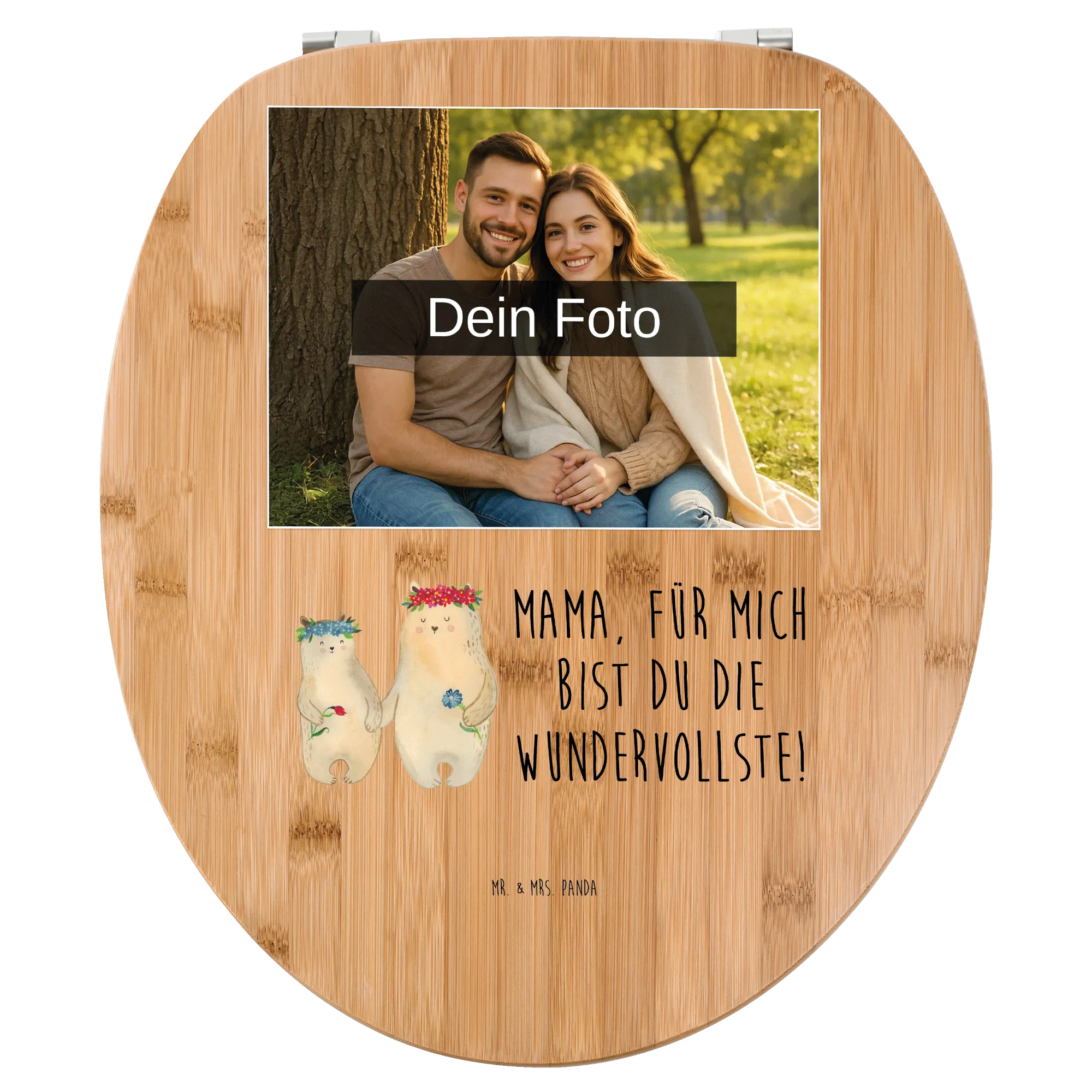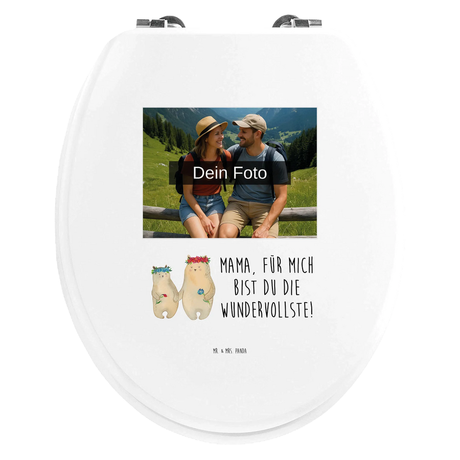 Erlebe die perfekte Kombination aus Stil und Komfort mit unserem personalisierten Foto WC Sitz Motiv von Mr. & Mrs. Panda! Mit den Maßen von 430 mm x 370 mm x 50 mm kommt dieser einzigartige Toilettensitz in zwei Varianten: hochwertigem Bambus Holz (braun) oder edlem MDF Holz (weiß). Der liebevoll gestaltete Sitz wird mit fröhlichen Motiven und Sprüchen bedruckt, die deinem Badezimmer eine besondere Note verleihen. Und das Beste? Du kannst ihn ganz nach deinem Geschmack mit deinem Wunschfoto gestalten! Achte darauf, dass das hochgeladene Bild in hoher Auflösung ist, um eine optimale Druckqualität zu garantieren. Achte darauf, dass der Bildausschnitt stimmt, damit alles gut zur Geltung kommt. Passend für alle Euro-WC-Becken und inkl. Montageset, bietet dieser WC Sitz nicht nur hohen Sitzkomfort, sondern macht dein Bad auch zu einem echten Hingucker. Vor allem an kalten Tagen kannst du den angenehmen Komfort genießen. Pflege ihn einfach mit einem feuchten Tuch und milder Seife – so bleibt er lange schön! Mit einem langlebigen UV-Druck bleibt dein persönliches Motiv immer strahlend! Leg dir jetzt diesen besonderen Toilettensitz zu und gestalte dein Bad nach deinen Vorstellungen!