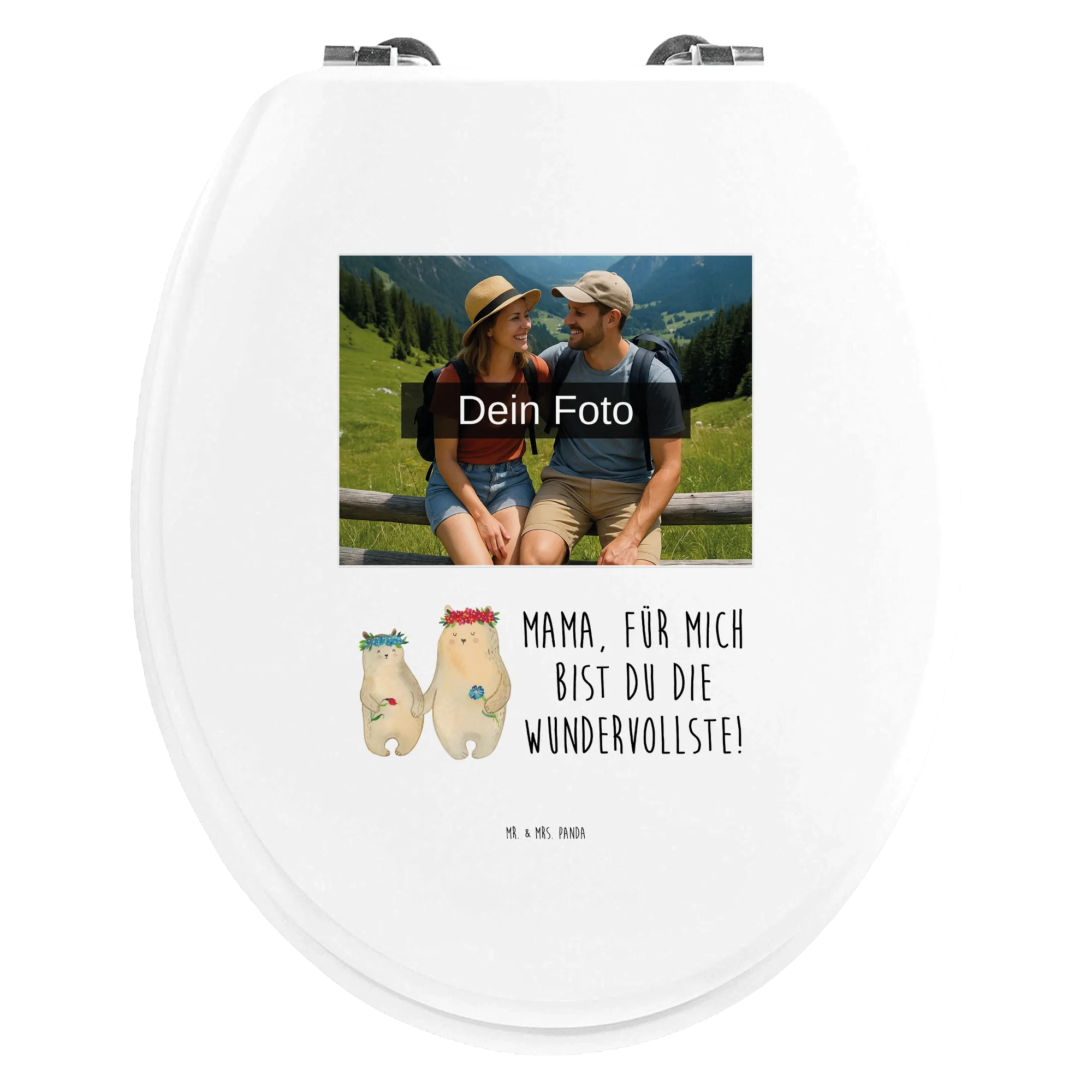 Personalisierter Foto WC Sitz Motiv Bären mit Blumenkranz - Hartfaser Holzkern Weiß