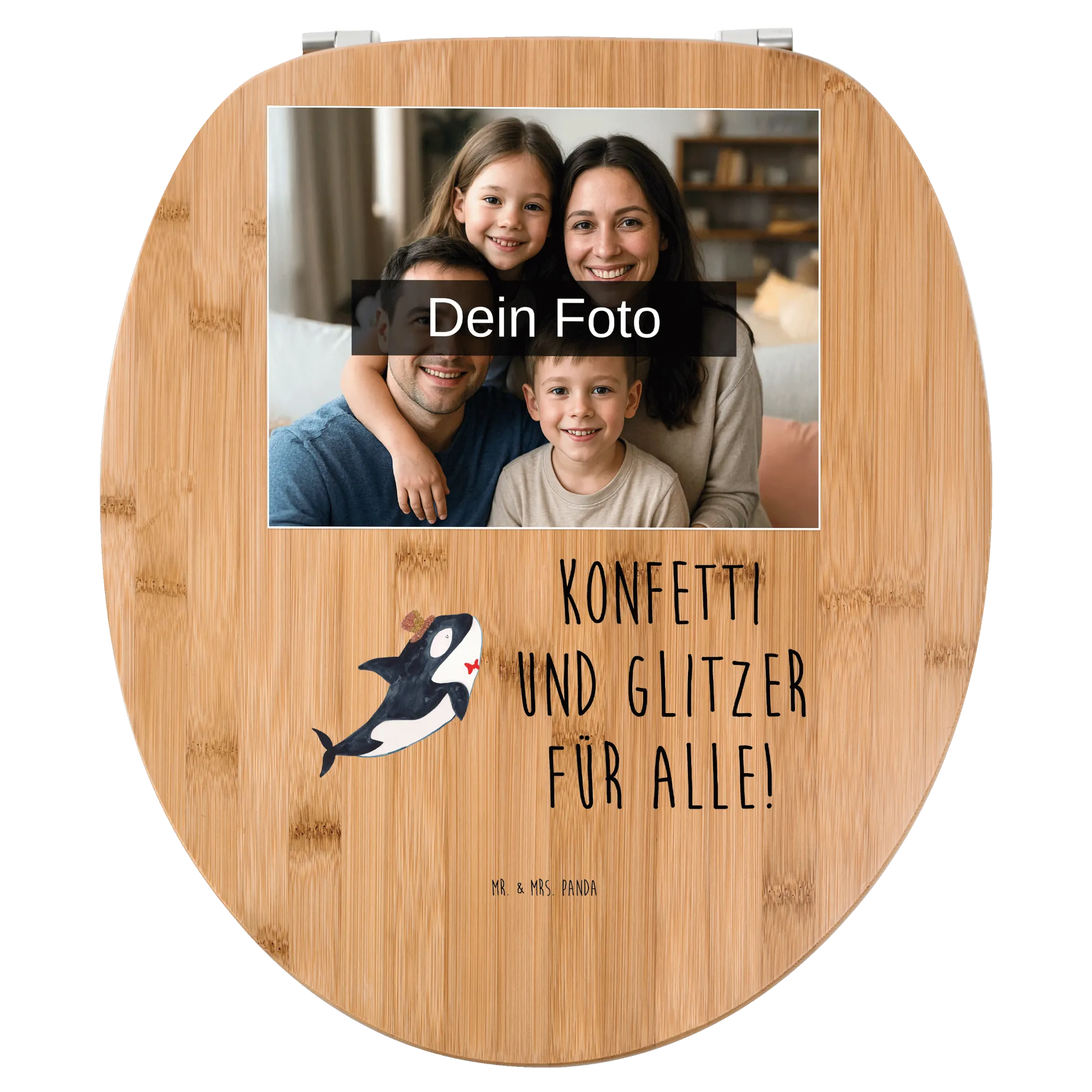 Mach dein Badezimmer zu einem besonderen Ort mit unserem personalisierten Foto WC Sitz Motiv! Der Sitz hat die Maße von 430 mm x 370 mm x 50 mm und ist wahlweise aus hochwertigem Bambus Holz (braun) oder robustem MDF Holz (weiß) gefertigt. Dieser liebevoll gestaltete Toilettensitz wird mit süßen Motiven und zauberhaften Sprüchen von Mr. & Mrs. Panda bedruckt. Lass deiner Kreativität freien Lauf und personalisiere ihn mit deinem eigenen Wunschfoto! Achte darauf, dass das hochgeladene Motiv hochauflösend ist, damit der Druck klar und lebendig wird. Denk daran, den richtigen Bildausschnitt zu wählen, damit keine wichtigen Details verloren gehen. Dieser WC Sitz passt auf alle Euro-WC-Becken und ist mit einem einfachen Montageset ausgestattet. Er bietet nicht nur hohen Sitzkomfort, sondern sorgt dank seiner speziellen Eigenschaften für ein angenehmes Sitzgefühl, selbst an kalten Tagen. Mit einem süßen Motiv bringst du mehr Lebensfreude in dein Badezimmer. Pflege dein neues Schmuckstück ganz einfach mit einem feuchten Tuch und handelsüblicher Seife, ohne aggressive Putzmittel. Der hochqualitative UV-Druck sorgt dafür, dass das Motiv lange strahlend bleibt. Hol dir jetzt diesen besonderen Toilettensitz und mach dein Bad einzigartig!