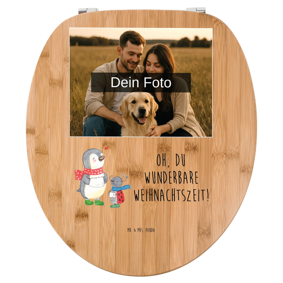 Verleih deinem Badezimmer mit unserem personalisierten Foto WC Sitz Motiv von Mr. & Mrs. Panda einen ganz besonderen Touch! Der Sitz misst 430 mm x 370 mm x 50 mm und ist wahlweise aus wunderschönem Bambus Holz (braun) oder praktischem MDF Holz (weiß) gefertigt. Lass dir die Freude einer lieben Person ins Bad holen, indem du diesen Toilettensitz mit deinem Wunschfoto individuell gestaltest! Achte darauf, dass das Foto in hoher Auflösung ist, um ein schönes Druckbild zu erhalten. Der richtige Bildausschnitt ist ebenfalls wichtig – so wird alles perfekt in Szene gesetzt. Dieser WC Sitz passt auf alle Euro-WC-Becken und wird mit dem notwendigen Befestigungszubehör geliefert. Hitze und Kälte haben keine Chance, denn der Sitz sorgt für angenehme Temperaturen. Pflege ihn ganz bequem mit einem feuchten Tuch und milder Seife. Der langlebige UV-Druck garantiert dir, dass dein Motiv lange Freude bereitet. Hol dir den trendy Toilettensitz und mach dein Badezimmer zum Blickfang!