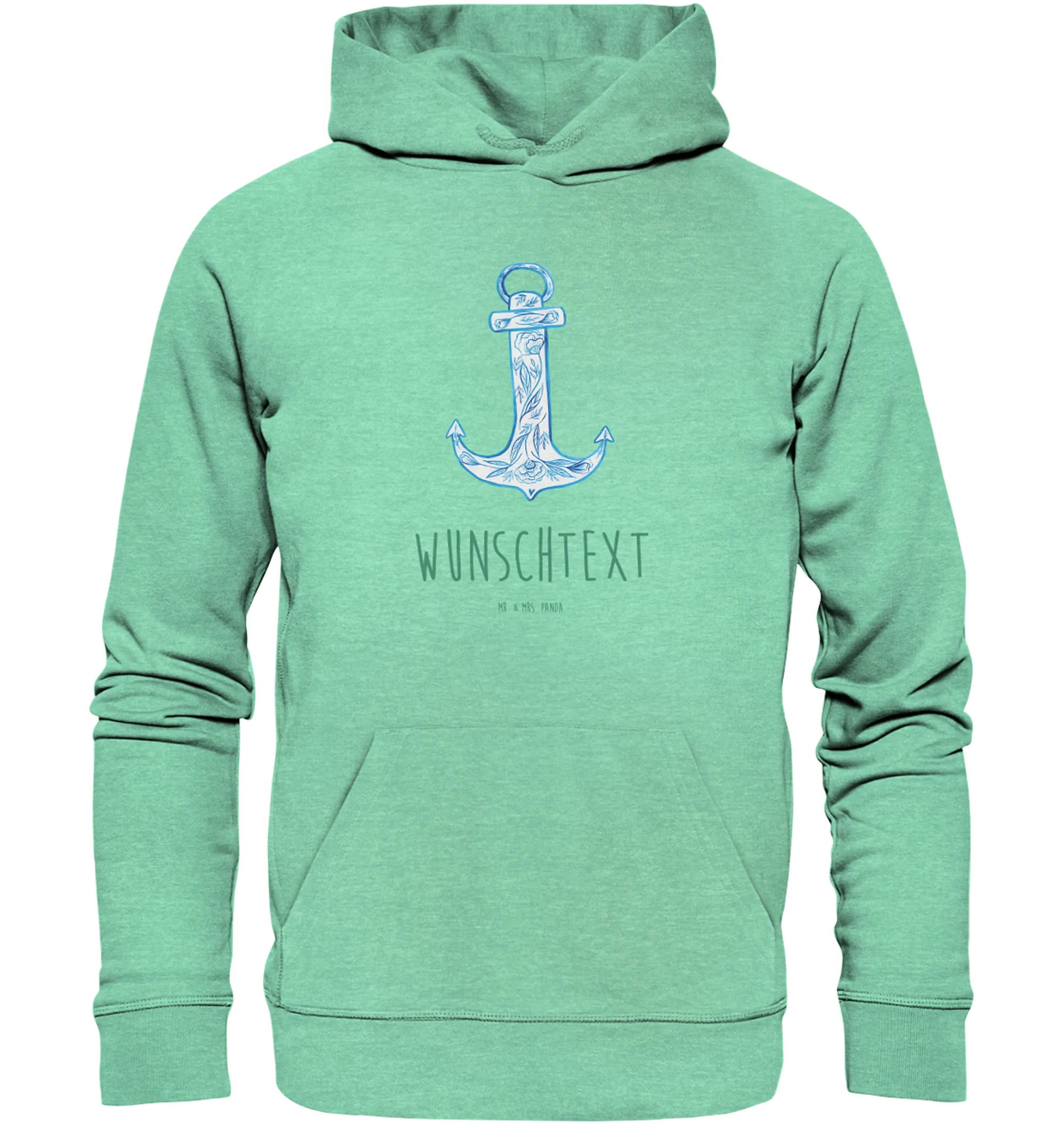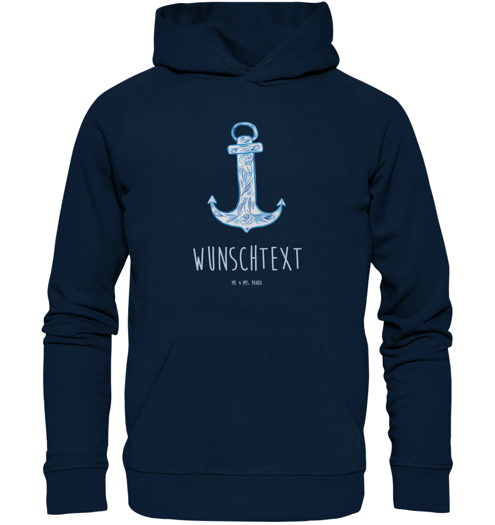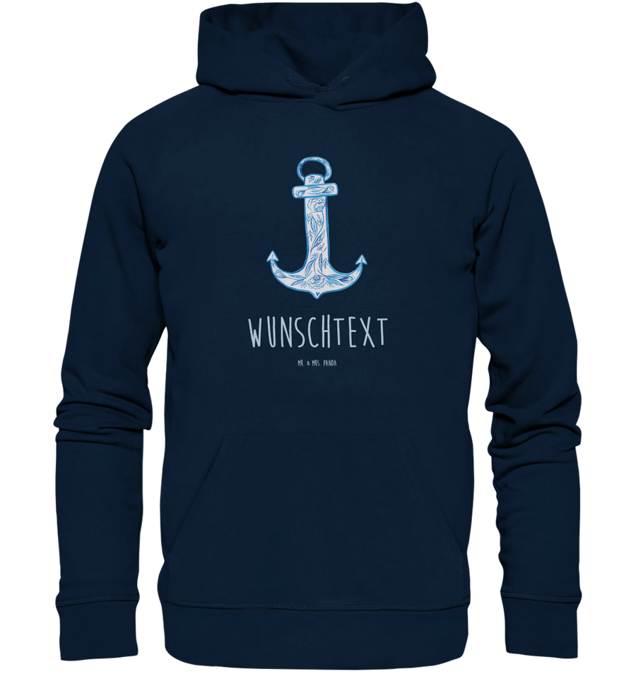 Jeder Hoodie wird aus hochwertiger Bio-Baumwolle gefertigt – so weich und flauschig, dass du ihn am liebsten den ganzen Tag tragen möchtest. Der wunderschöne Anker in tiefem Blau strahlt Ruhe und Gelassenheit aus und kann mit deinem ganz persönlichen Wunschtext oder Namen versehen werden – perfekt, um einen besonderen Moment festzuhalten oder jemandem zu zeigen, wie wichtig er dir ist!