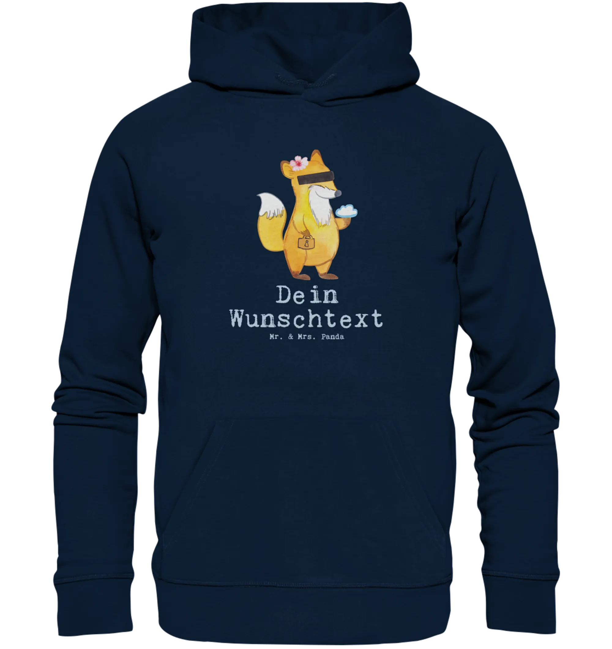 Das Motiv: Unsere Fuchsdame liebt ihren Job als Datenschutzbeauftragte. Sie sorgt fürs Schloss und für sichere Daten – das ideale Bild für alle, die Datenschutz ernst und mit Herz leben. Personalisierung macht den Hoodie zum emotionalen Erinnerungsstück.