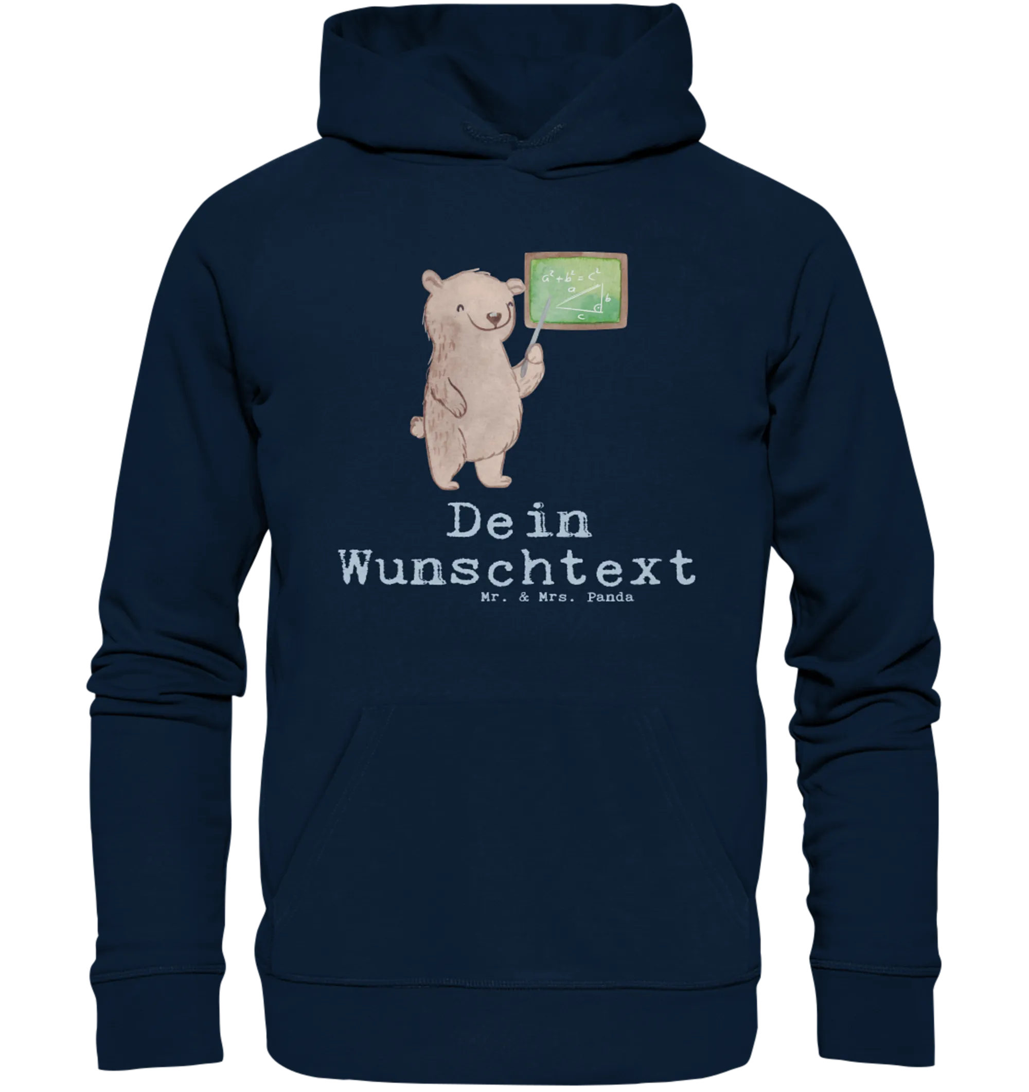 Jeder Hoodie wird mit deiner persönlichen Note gestaltet, indem du deinen Wunschnamen oder Wunschtext hinzufügen kannst. So wird er zu einem Unikat! Die kreative Berufe Kollektion von Mr. & Mrs. Panda feiert den Lehrerberuf auf eine ganz besondere Art und Weise. Die niedliche Grafik eines süßen Bären, der an der Tafel rechnet, bringt ein wenig Humor in den Matheunterricht.