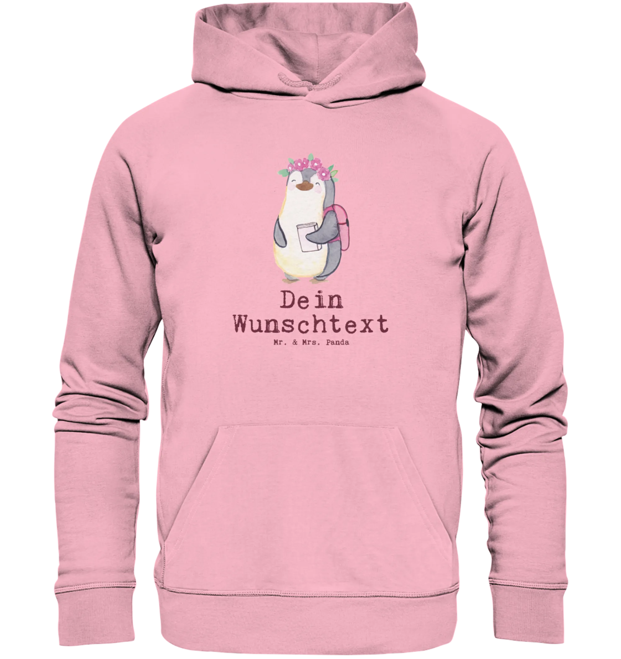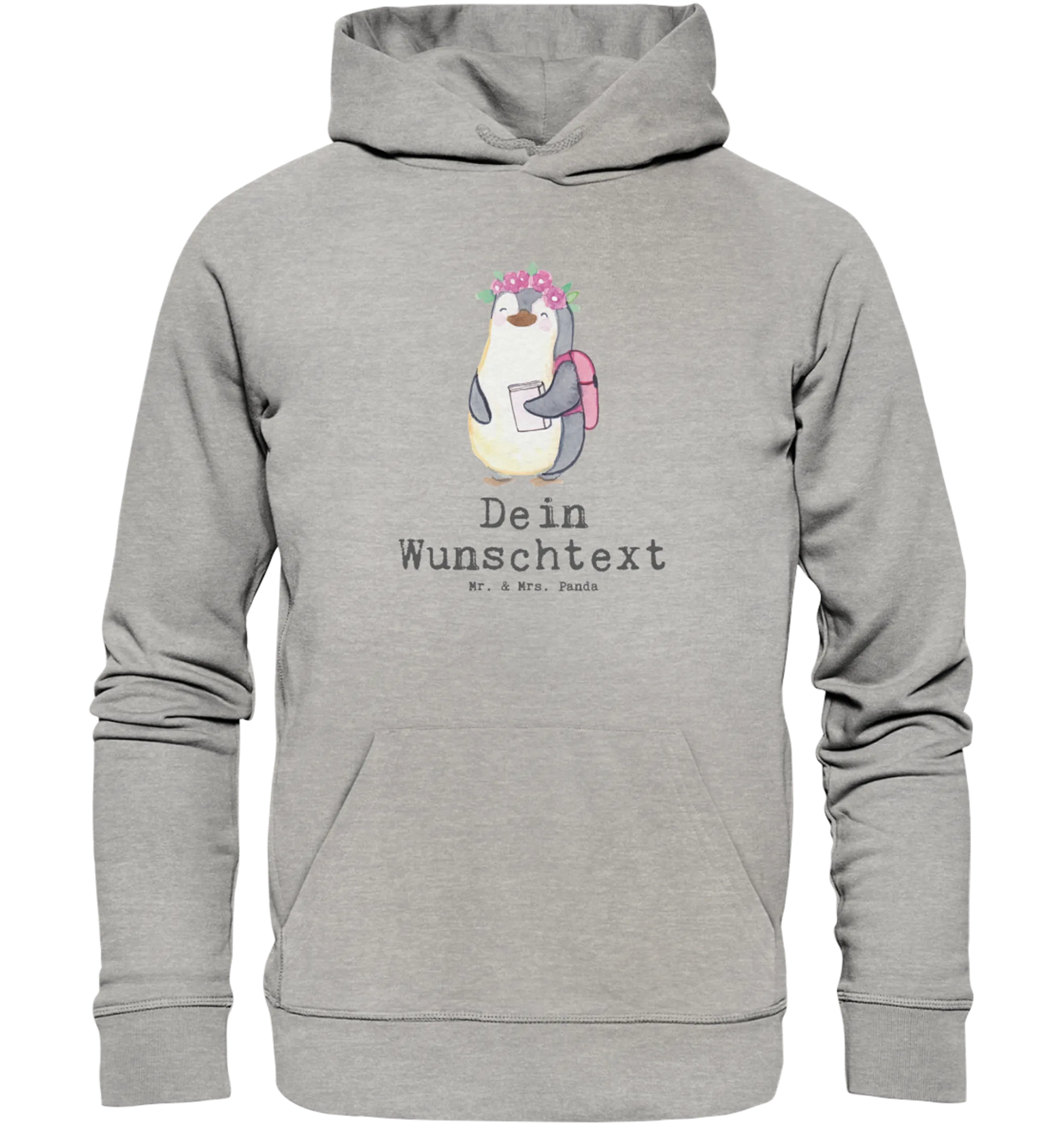 Der personalisierte Hoodie "Studentin mit Herz" von Mr. & Mrs. Panda ist das perfekte Geschenk für jede Studentin, die Wert auf Individualität und Stil legt. Dieser wunderschöne Kapuzenpullover vereint Komfort und Kreativität und ist aus flauschiger Bio-Baumwolle gefertigt, die sanft auf der Haut liegt. Mit einem charmanten, handgezeichneten Motiv eines süßen Pinguins, der seinen Rucksack trägt und zur Uni geht, ist der Hoodie nicht nur ein modisches Statement, sondern auch eine liebevolle Hommage an das Studentendasein.