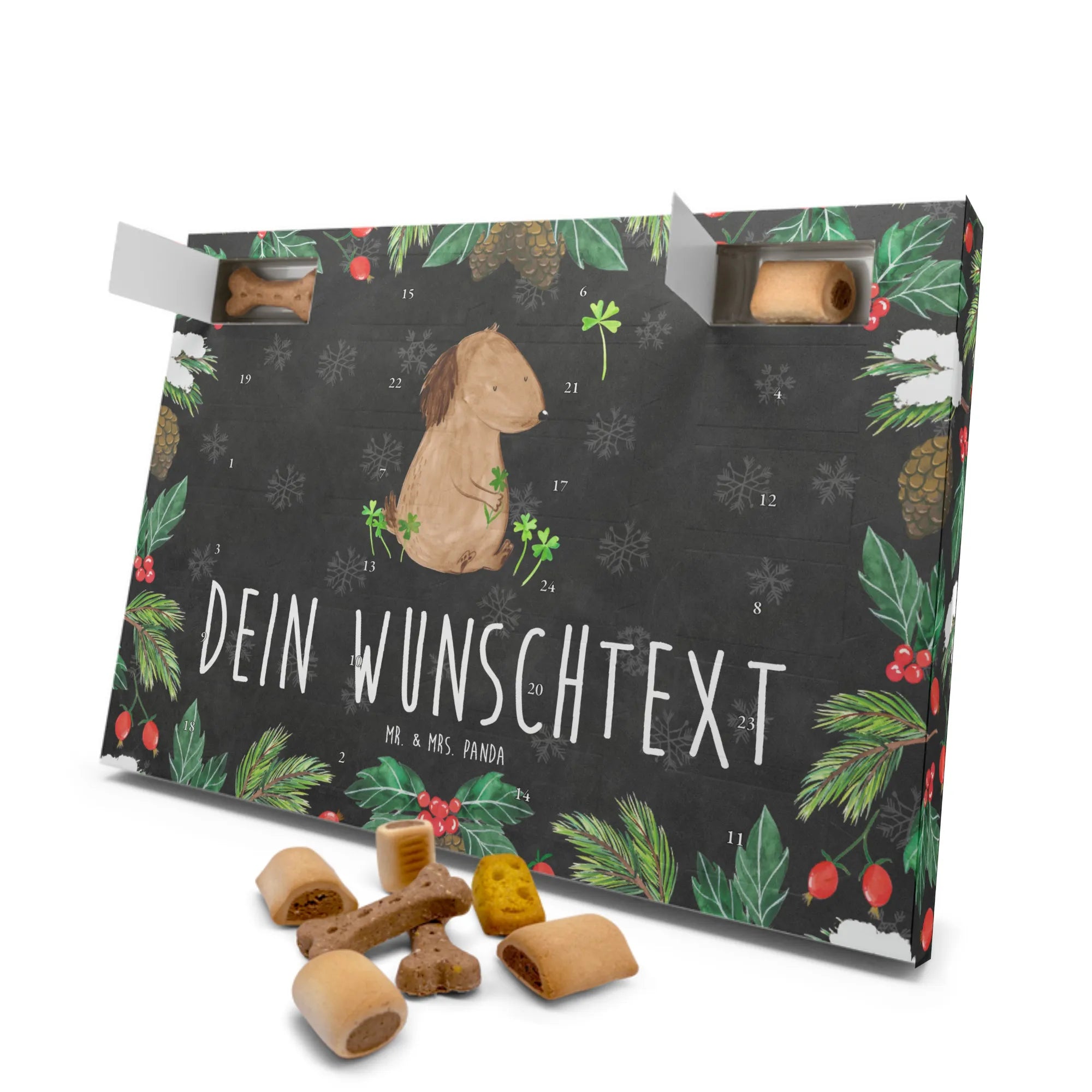 Der personalisierte Hunde Adventskalender von Mr. & Mrs. Panda ist das perfekte Geschenk für jeden Hundeliebhaber. Mit seinem süßen Motiv, einem Hund mit einem Kleeblatt in der Hand, symbolisiert er Glück und die unvergesslichen Momente, die wir mit unseren vierbeinigen Freunden teilen.