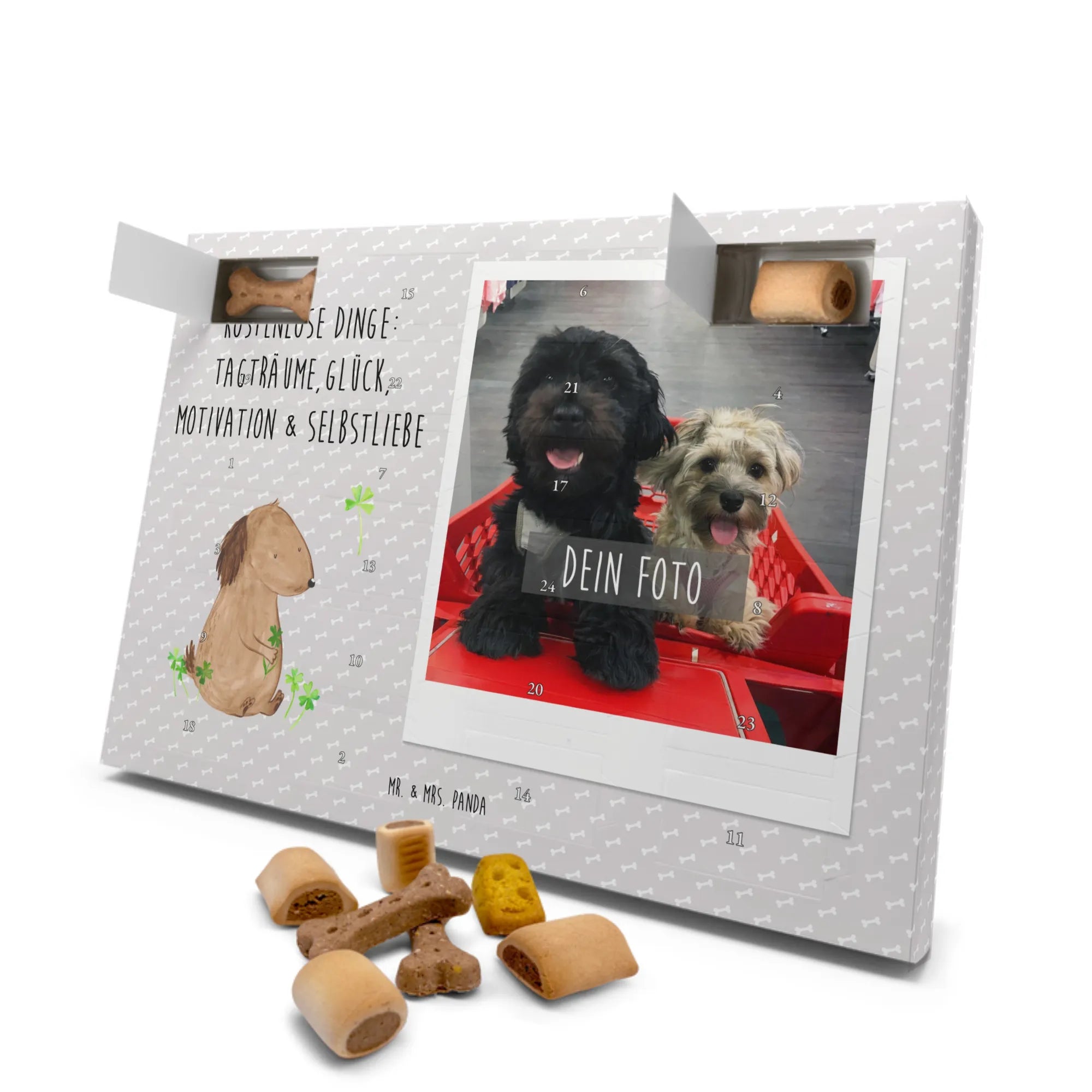 🐼 PERSONALISIERTER KALENDER: Dein Foto-Adventskalender mit 24 Premium-Hundekuchen, personalisierbar, liebevolle Motive von Mr. & Mrs. Panda.