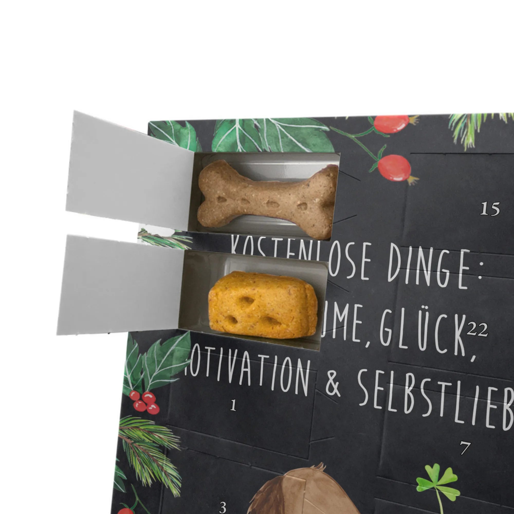 Überrasche Deine Freunde oder Deine Familie mit diesem besonderen Adventskalender, der nicht nur als Glücksbringer dient, sondern auch zur Selbstliebe und Achtsamkeit anregt. Der Spruch „Es gibt Dinge, die man für Geld nicht kaufen kann“ passt perfekt zu diesem liebevollen Geschenk. Wenn Du auf der Suche nach einem einzigartigen Geschenk für einen Hundebesitzer bist oder einfach nur Freude bereiten möchtest, dann ist dieser Adventskalender genau das Richtige für Dich!
