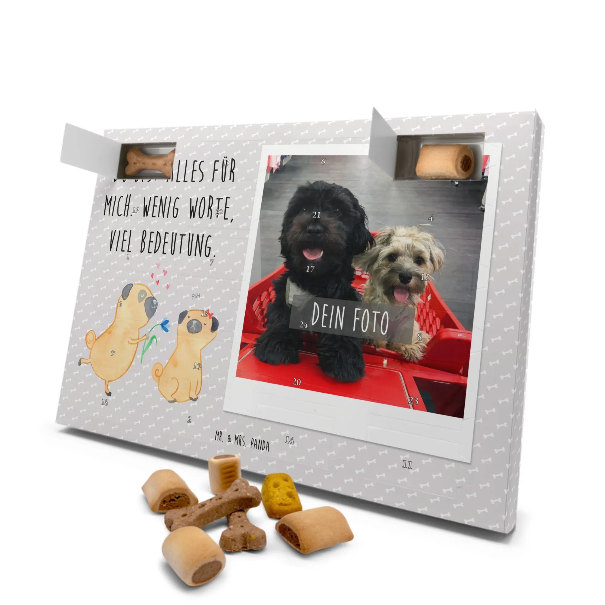 Personalisierter Hunde Foto Adventskalender Mops Verliebt – Mr. & Mrs. Panda