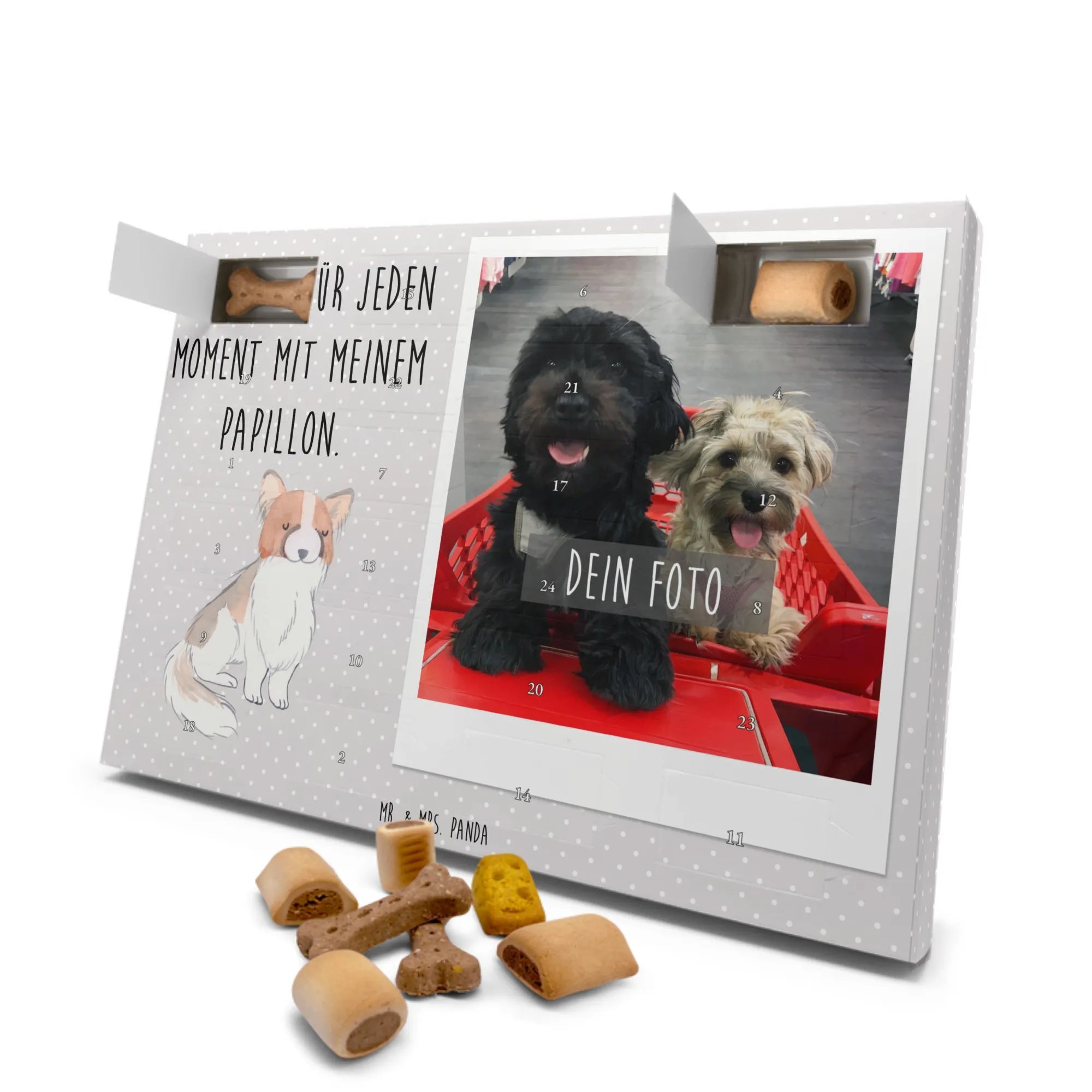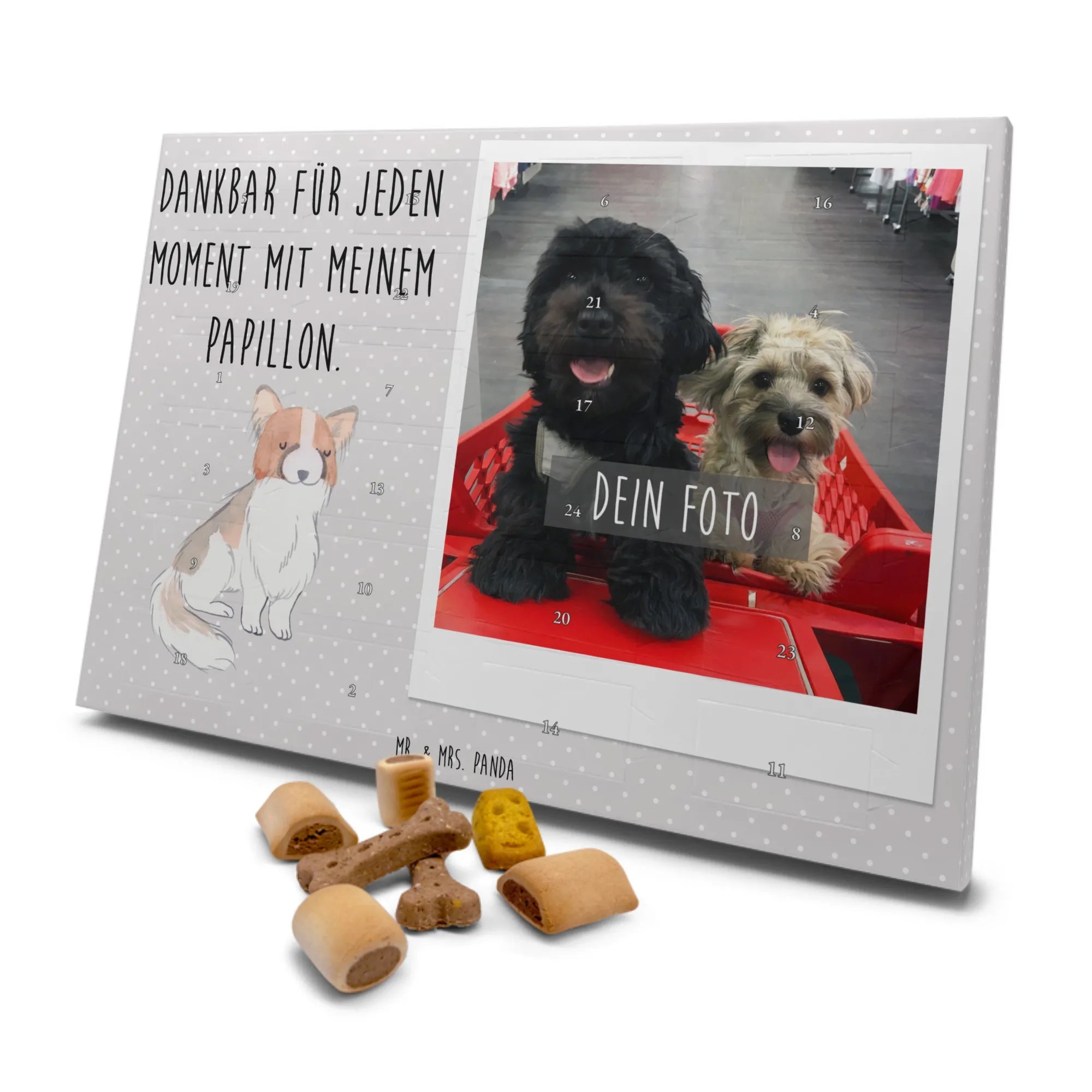 Der personalisierte Hunde Foto Adventskalender von Mr. & Mrs. Panda ist das perfekte Geschenk für alle, die einen zauberhaften Papillon zu Hause haben! Mit dem Motto "Dankbar für jeden Moment mit meinem Papillon" wird dieser Kalender zu einer liebevollen Hommage an deinen treuen Begleiter.