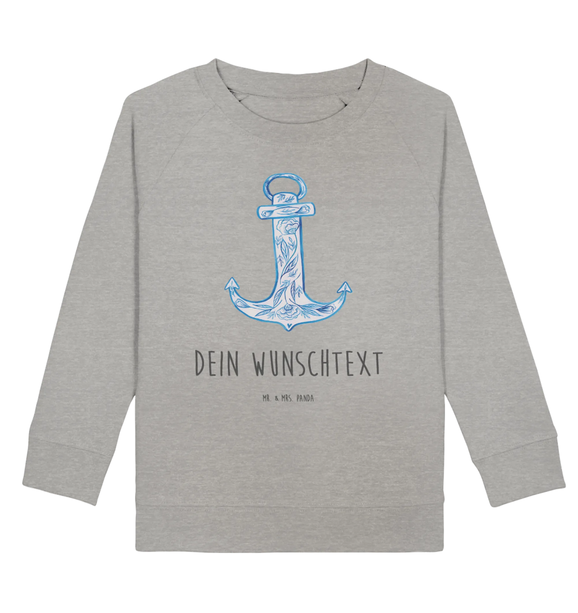 Personalisierter Kinder Pullover Anker Blau - 12-14 Jahre (152/164) - Heather Grey