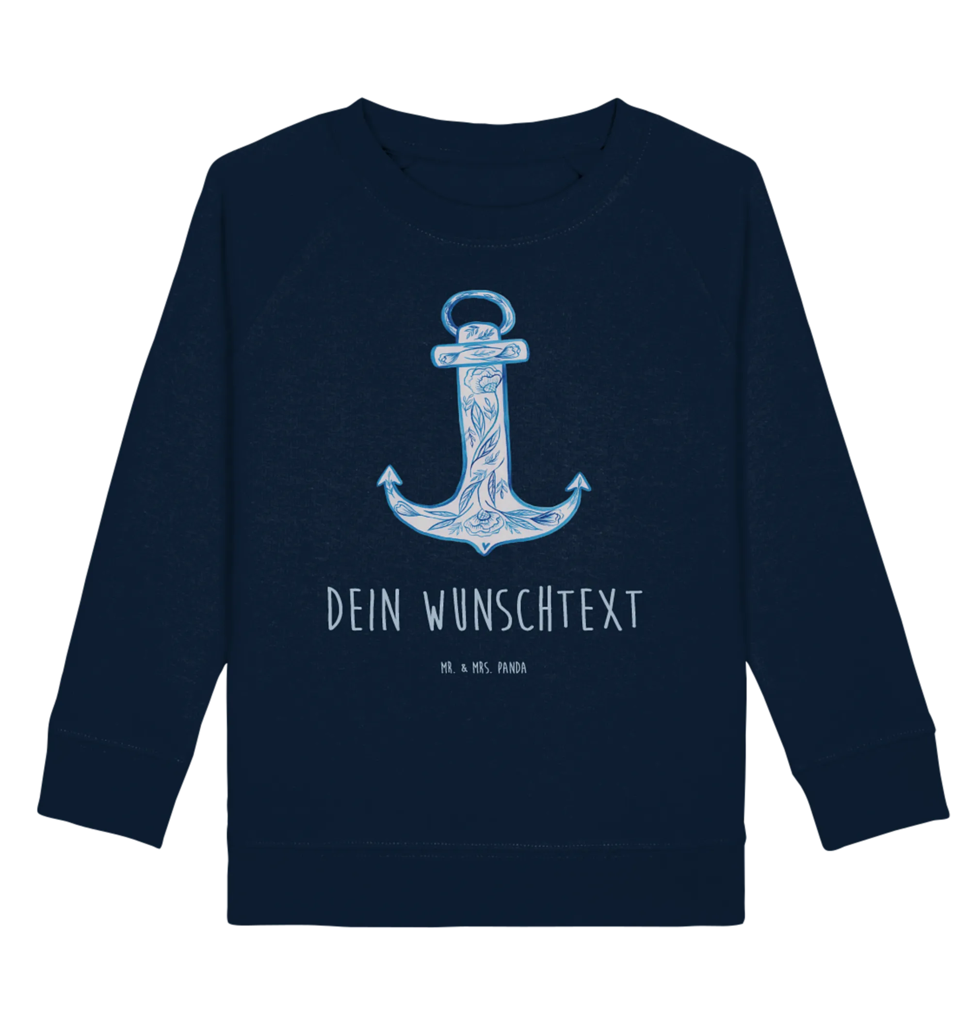 Entdecke den traumhaften personalisierten Kinder Pullover Anker Blau aus der bezaubernden Small World Kollektion von Mr. & Mrs. Panda! Dieses einzigartige Sweatshirt ist nicht nur ein echtes Highlight, sondern bringt auch Freude und gute Laune in den Alltag Deiner Kleinen. Der tiefblaue Anker ist liebevoll gestaltet und strahlt die Weite des Meeres aus.