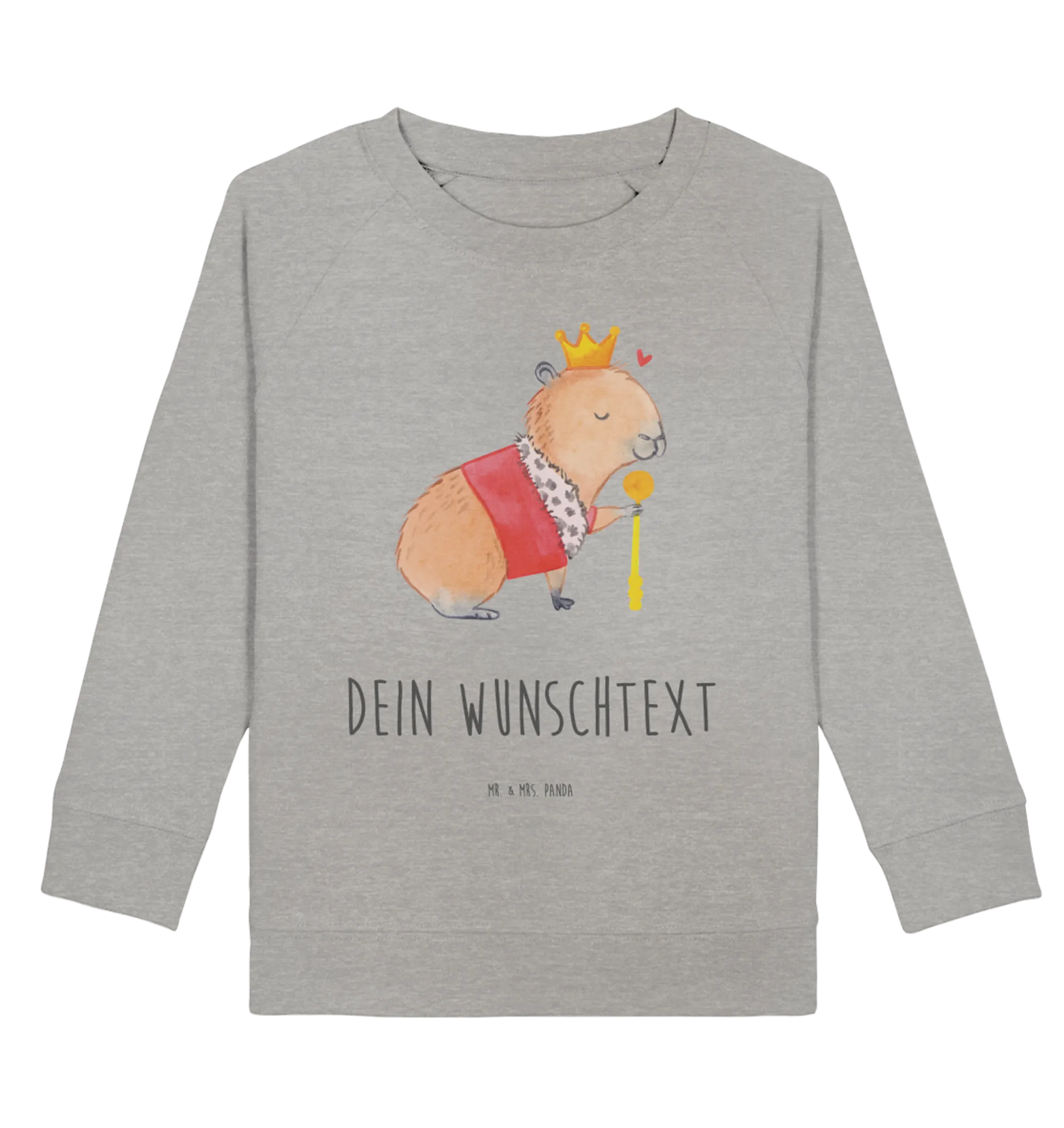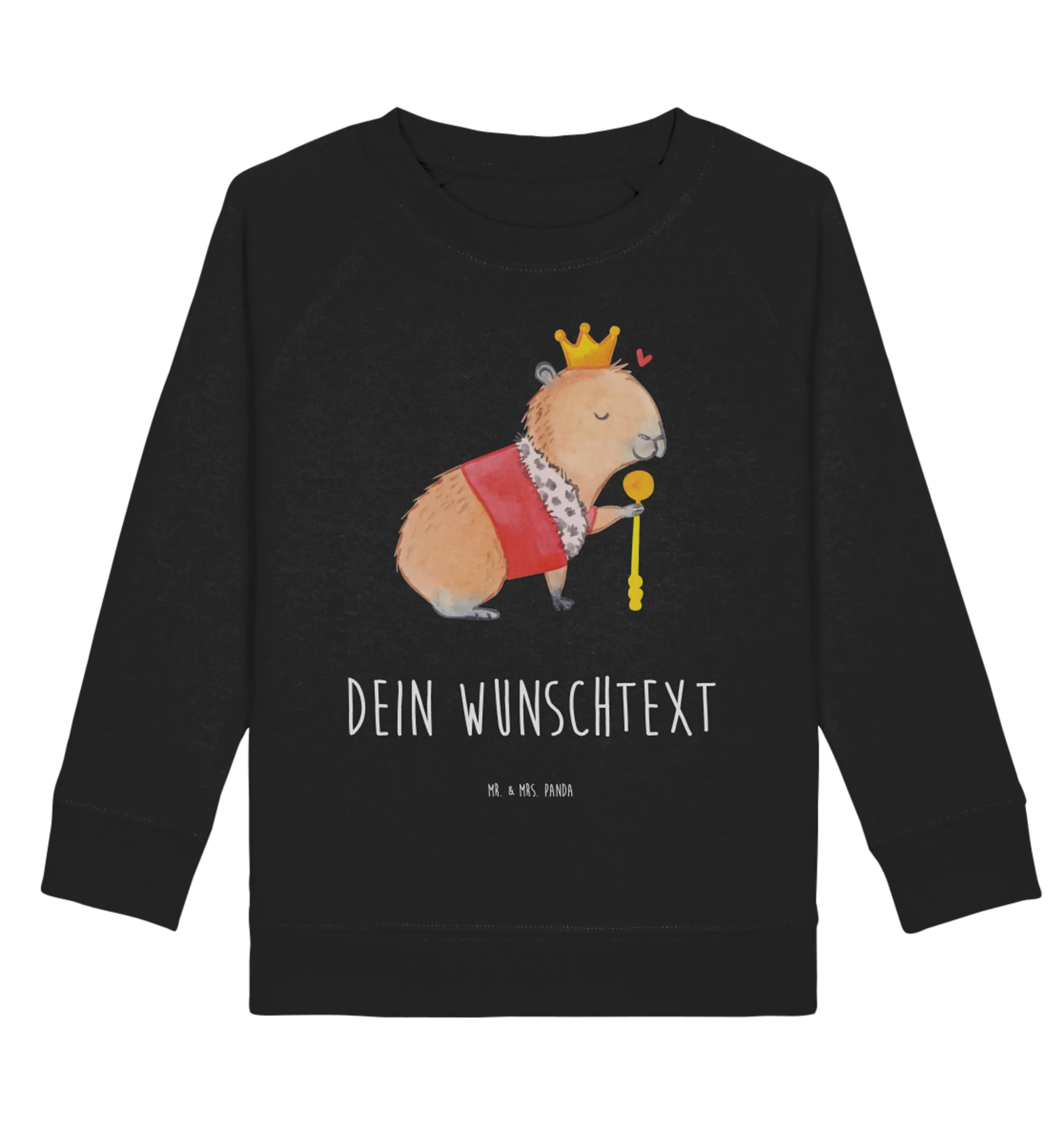 Entdecke den bezaubernden personalisierten Kinder Pullover mit dem süßen Capybara König Motiv aus unserer Small World Kollektion!