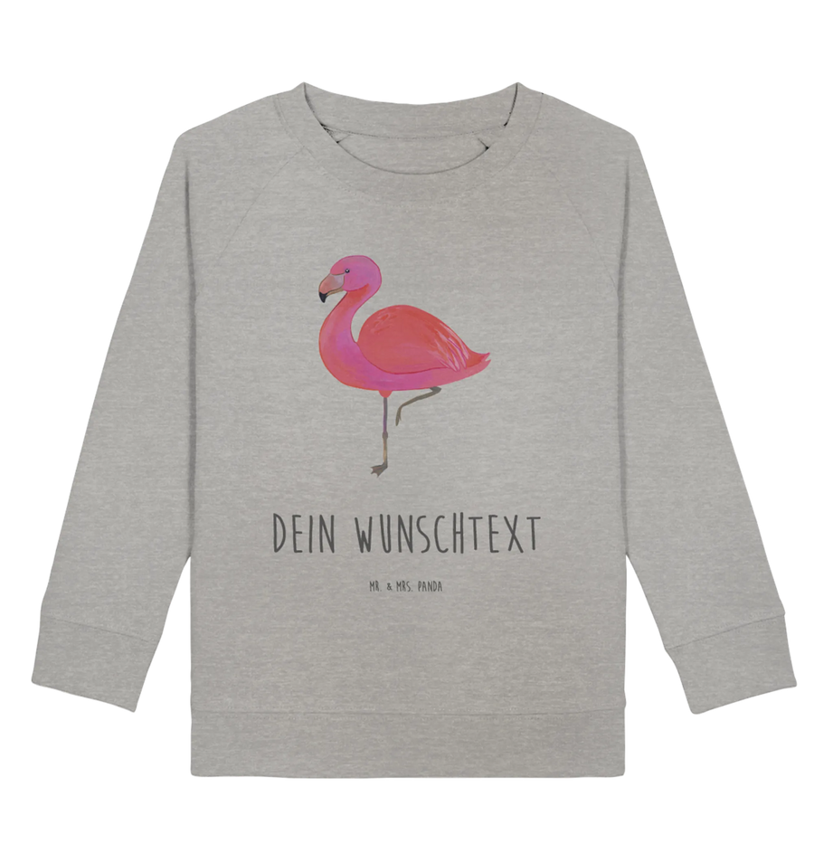 Personalisierter Kinder Pullover Flamingo classic - 12-14 Jahre (152/164) - Heather Grey