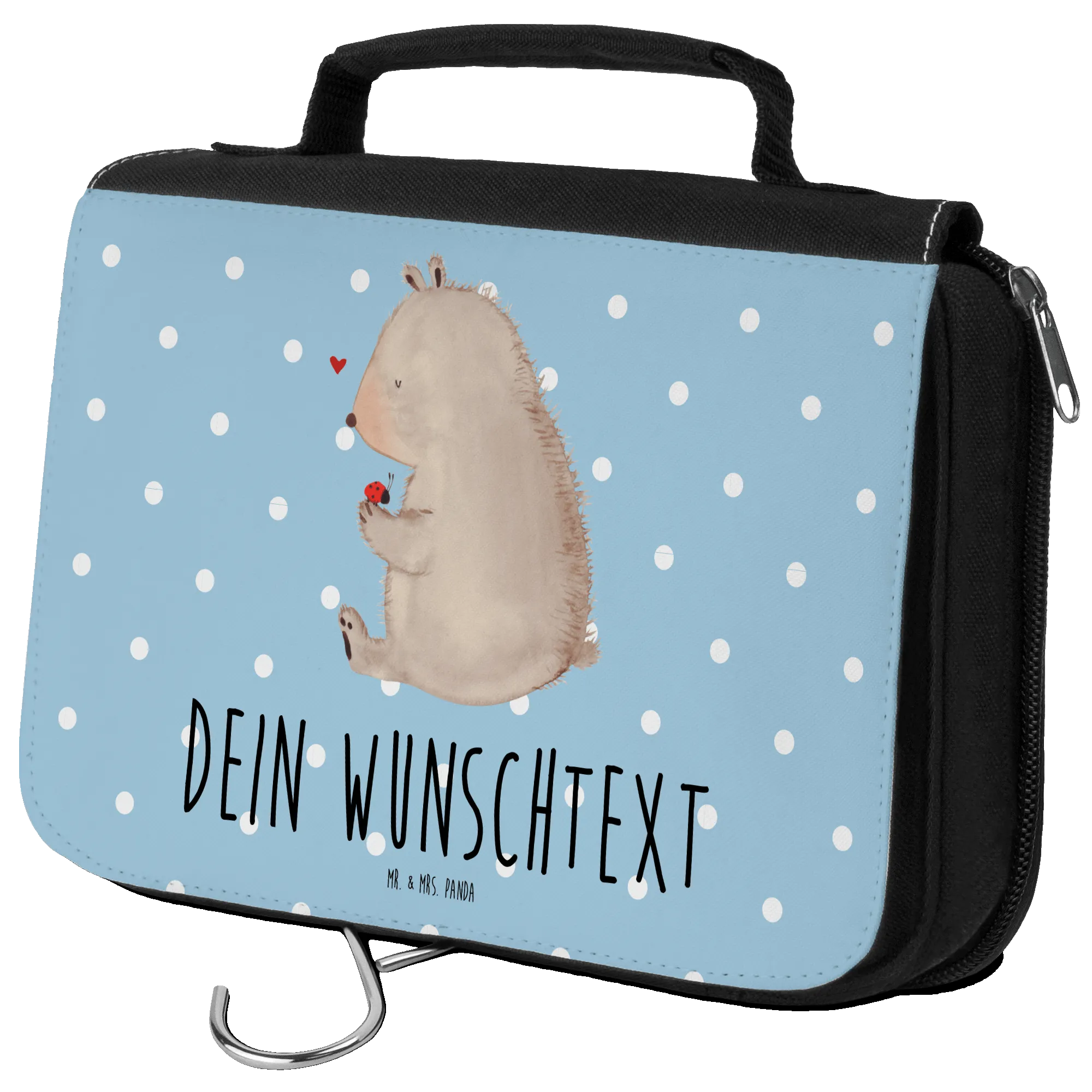 Entdecke unseren personalisierten Kulturbeutel mit dem bezaubernden Motiv Bär mit Marienkäfer von Mr. & Mrs. Panda! Dieser Kulturbeutel ist nicht nur praktischer Begleiter für Reisen, sondern auch das perfekte Geschenk für Freunde und Familie. Personalisiert mit deinem Wunschnamen oder Wunschtext, sorgt er für ein unverwechselbares Flair.