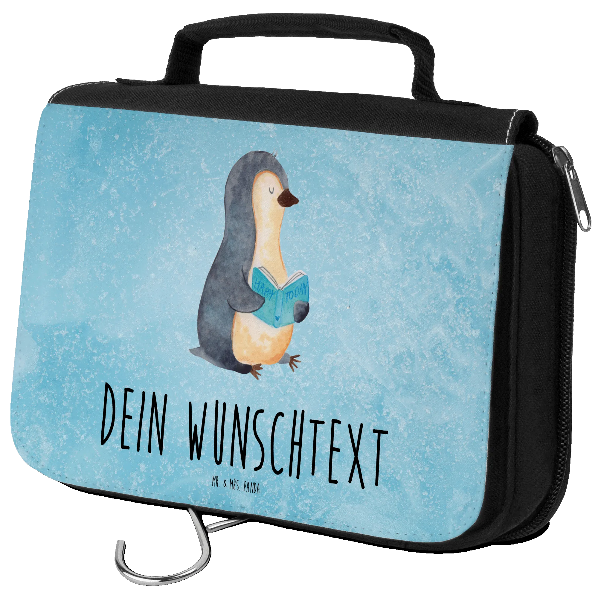 Personalisierter Kulturbeutel Pinguin Buch - Eisblau