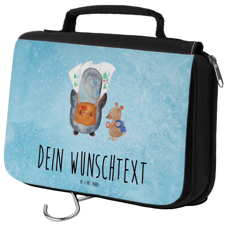 Personalisierter Kulturbeutel Pinguin & Maus Wanderer - Eisblau
