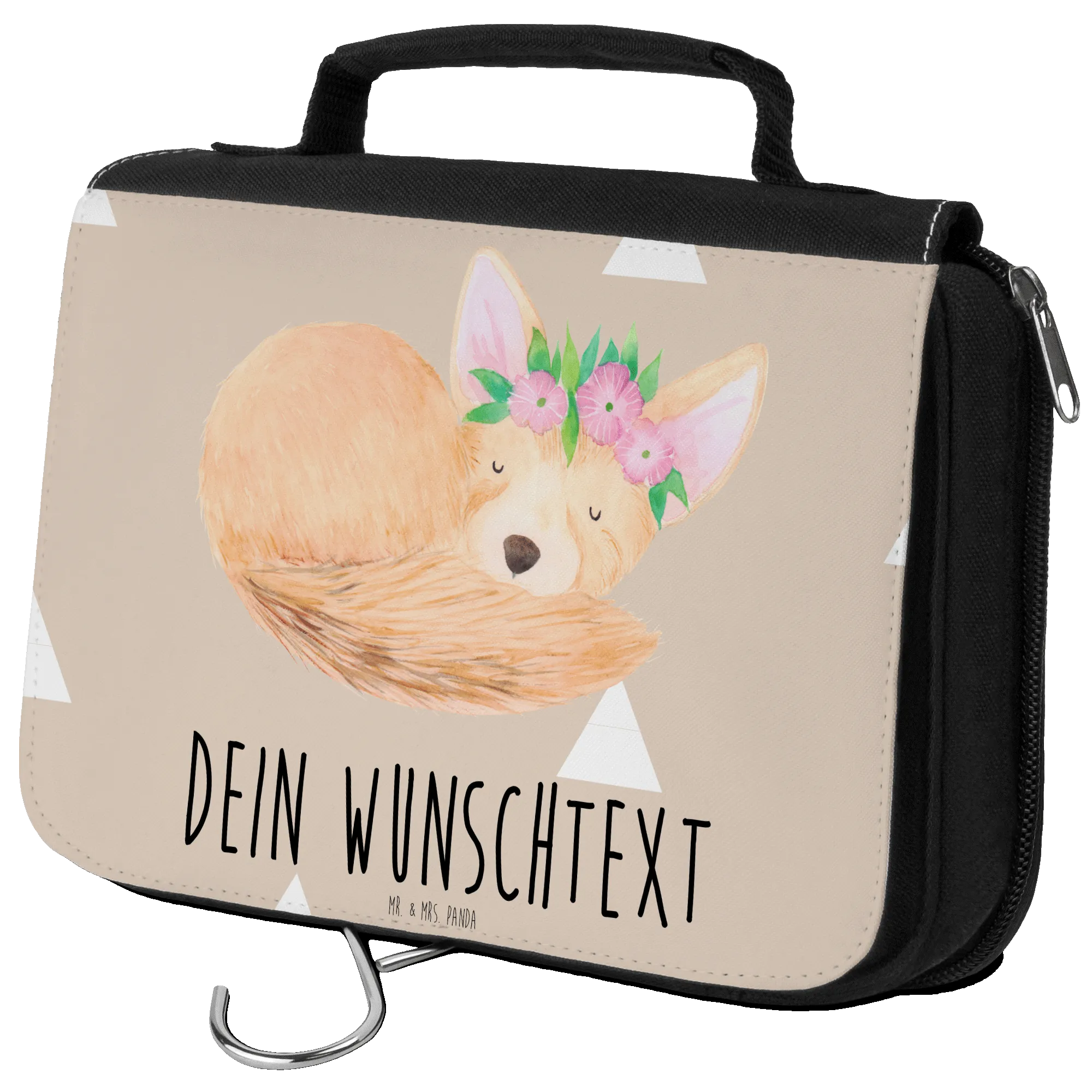 Personalisierter Kulturbeutel Wüstenfuchs Blumen – Mr. & Mrs. Panda