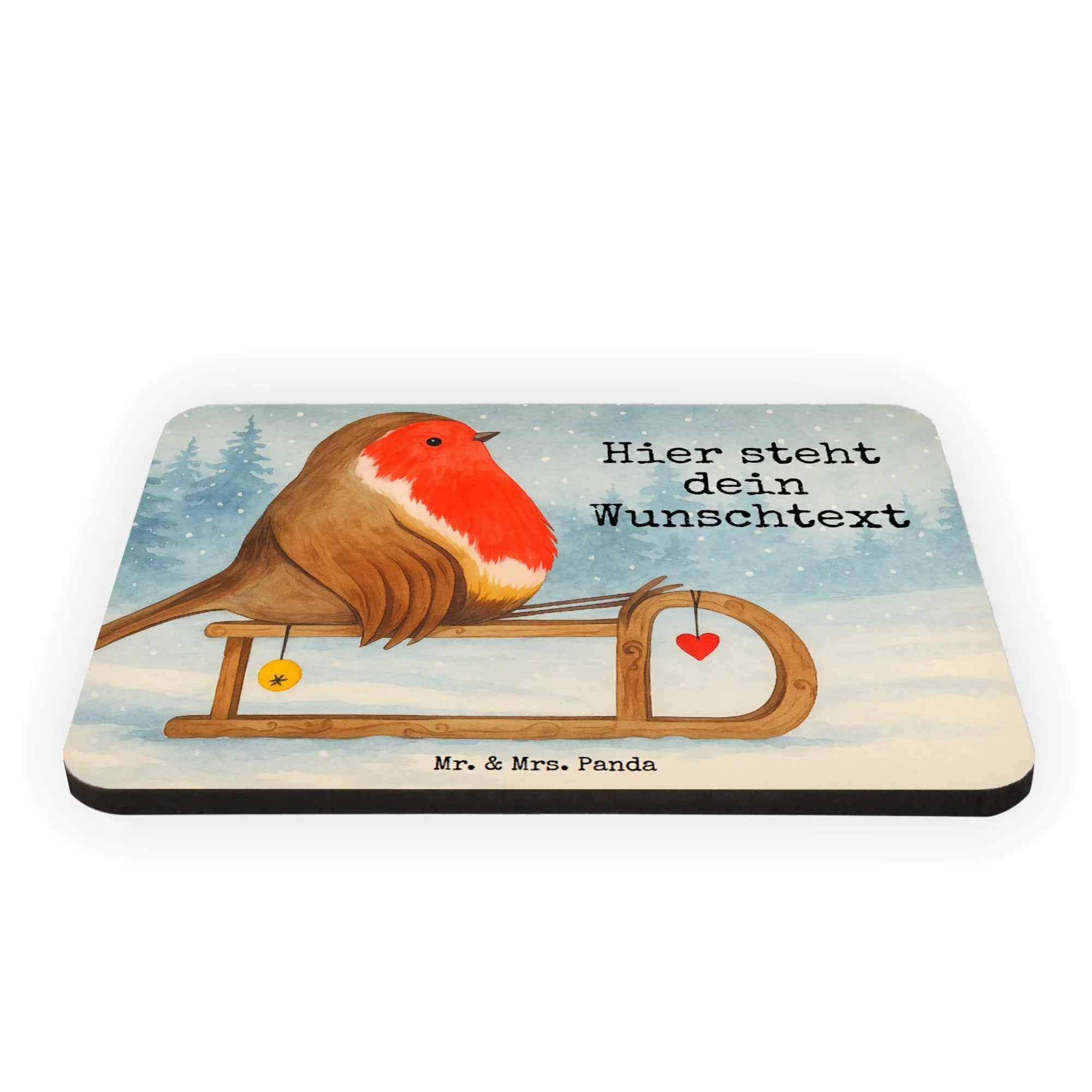 Personalisierter Magnet Rotkehlchen Schlitten Design – Mr. & Mrs. Panda