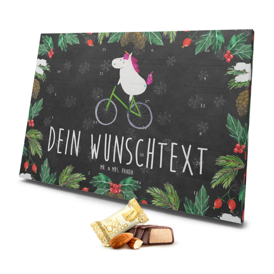 Personalisierter Marzipan Adventskalender Einhorn Radfahrer - Schwarz