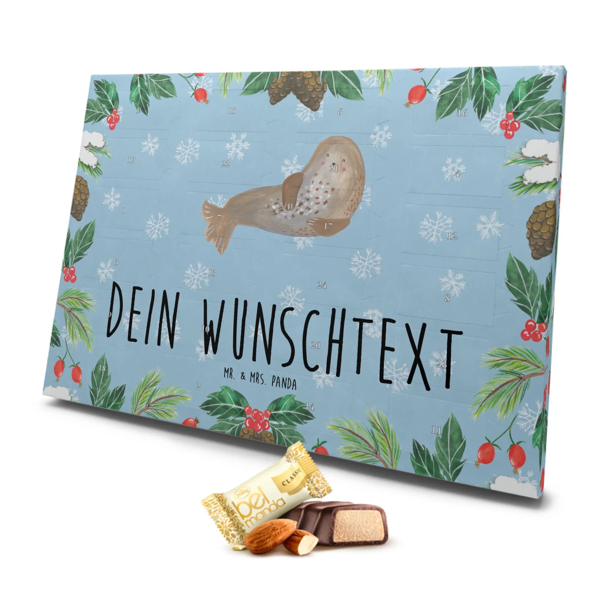Personalisierter Marzipan Adventskalender Robbe Lachen - Schwarz