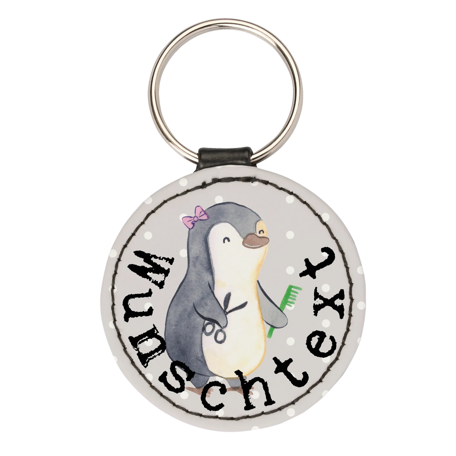 Du bist auf der Suche nach einem ganz besonderen Geschenk für die Frisörin in deinem Leben? Unser personalisierter Schlüsselanhänger 'Friseurin mit Herz' von Mr. & Mrs. Panda ist genau das Richtige! Dieser wunderschöne Schlüsselanhänger, aus edlem Premium Kunstleder gefertigt, verbindet Funktionalität mit kreativem Design. Mit einem liebevoll handgezeichneten Motiv einer Frisörin, die einen Kamm und eine Schere in den Händen hält, strahlt er Leidenschaft und Berufsstolz aus.