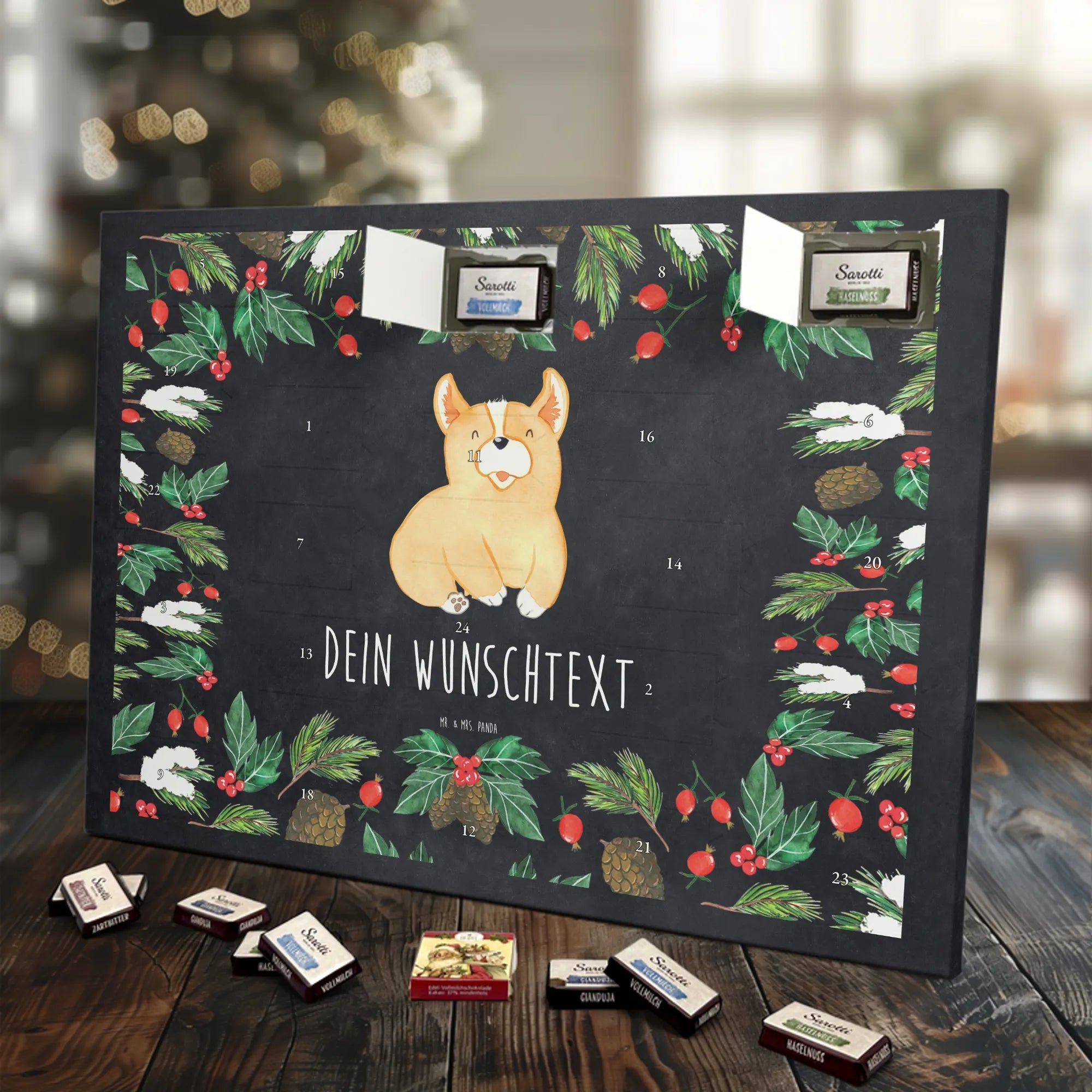 Personalisierter Schoko Adventskalender Corgie - Lindt HELLO - Kreidetafel