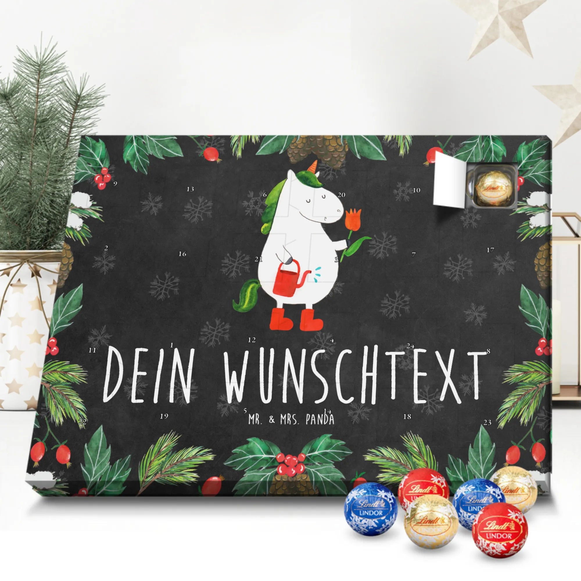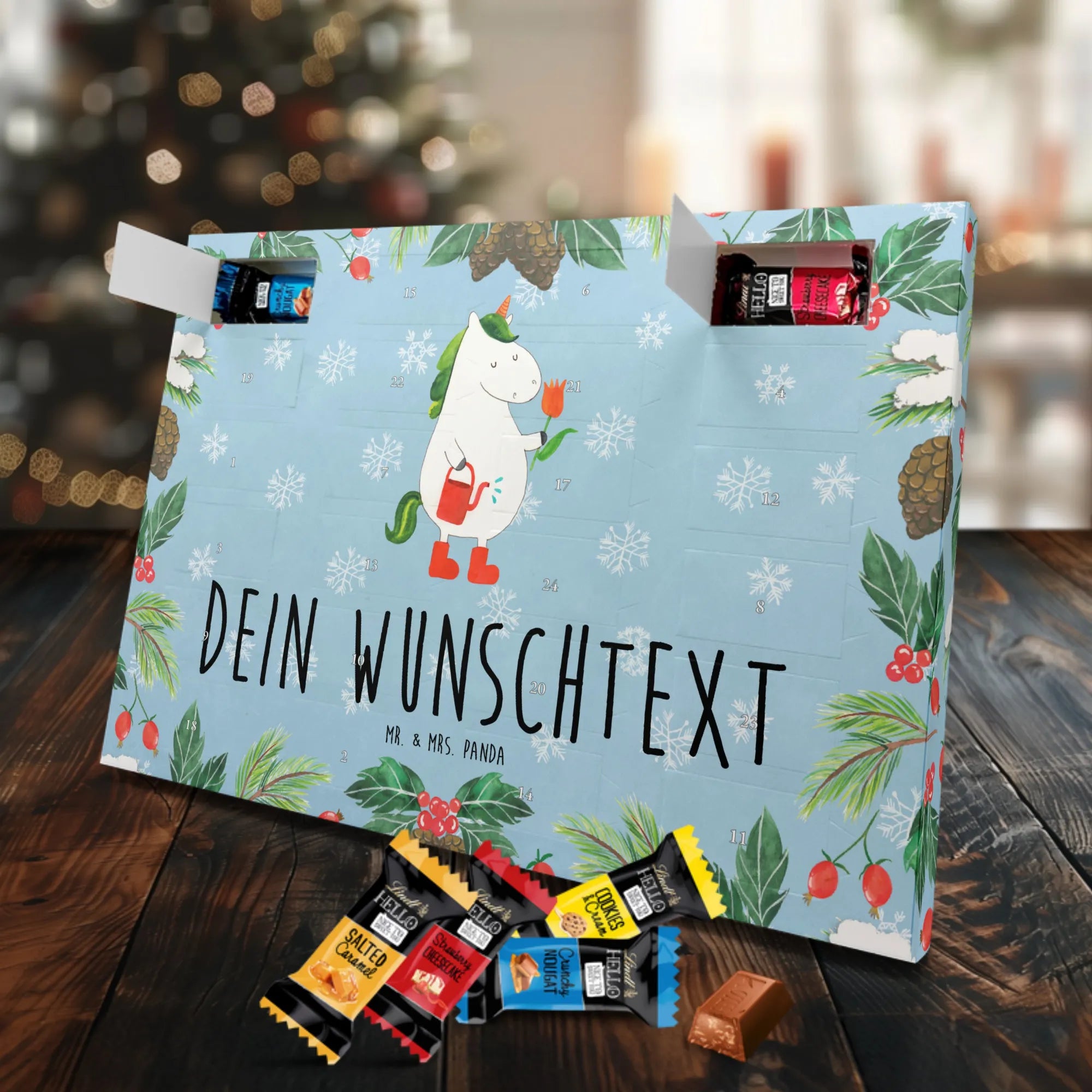 Personalisierter Schoko Adventskalender „Einhorn Gärtner“ – ein zauberhaftes Geschenk aus der Einhorn - Kollektion von Mr. & Mrs. Panda. Dieses niedliche Motiv zeigt ein Einhorn mit Gießkanne, umgeben von Blumen und Luftballons. Der freche Spruch „Hör immer auf dein Herz. Außer dein Einhorn will Blumen gießen. Dann hör auf dein Einhorn.“ macht den Kalender besonders persönlich und sorgt für tägliche Lacher. 🎁