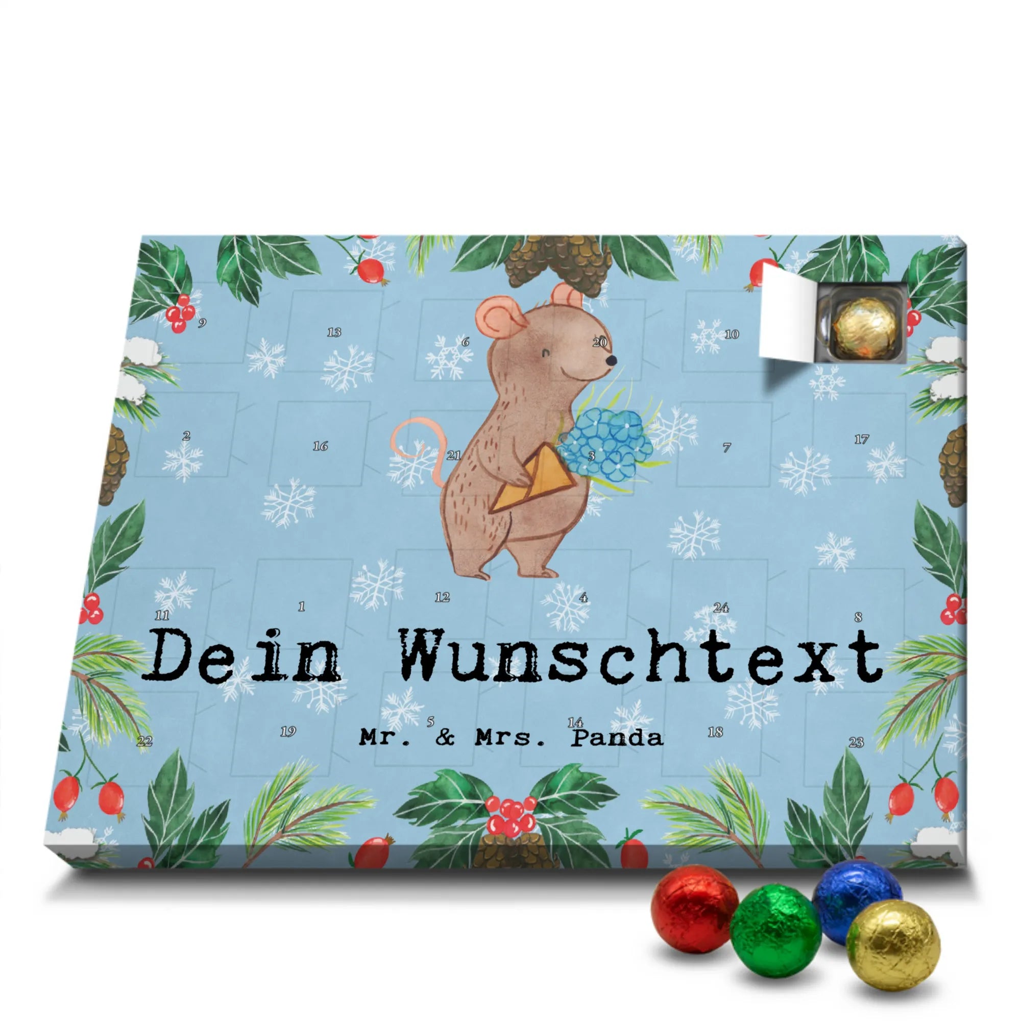 JETZT FREUDE VERSCHENKEN: Personalisiere deinen Schoko Adventskalender von Mr. & Mrs. Panda – liebevoll gestaltet und gefüllt mit MARKENNAMEN Schokolade!