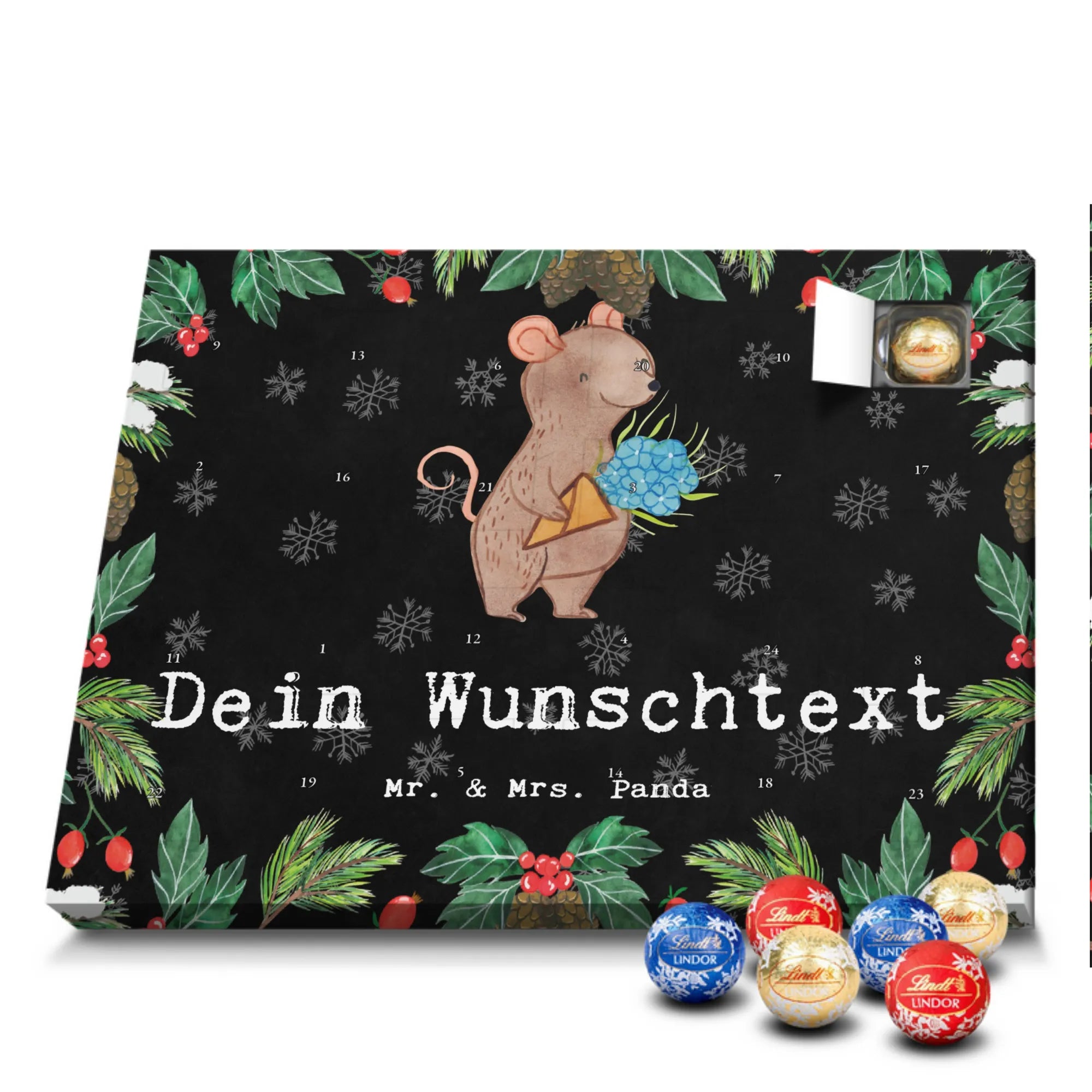 🐼 Schoko Adventskalender personalisiert mit Wunschtext, seidenmatt, gefüllt mit Lindt Hello.