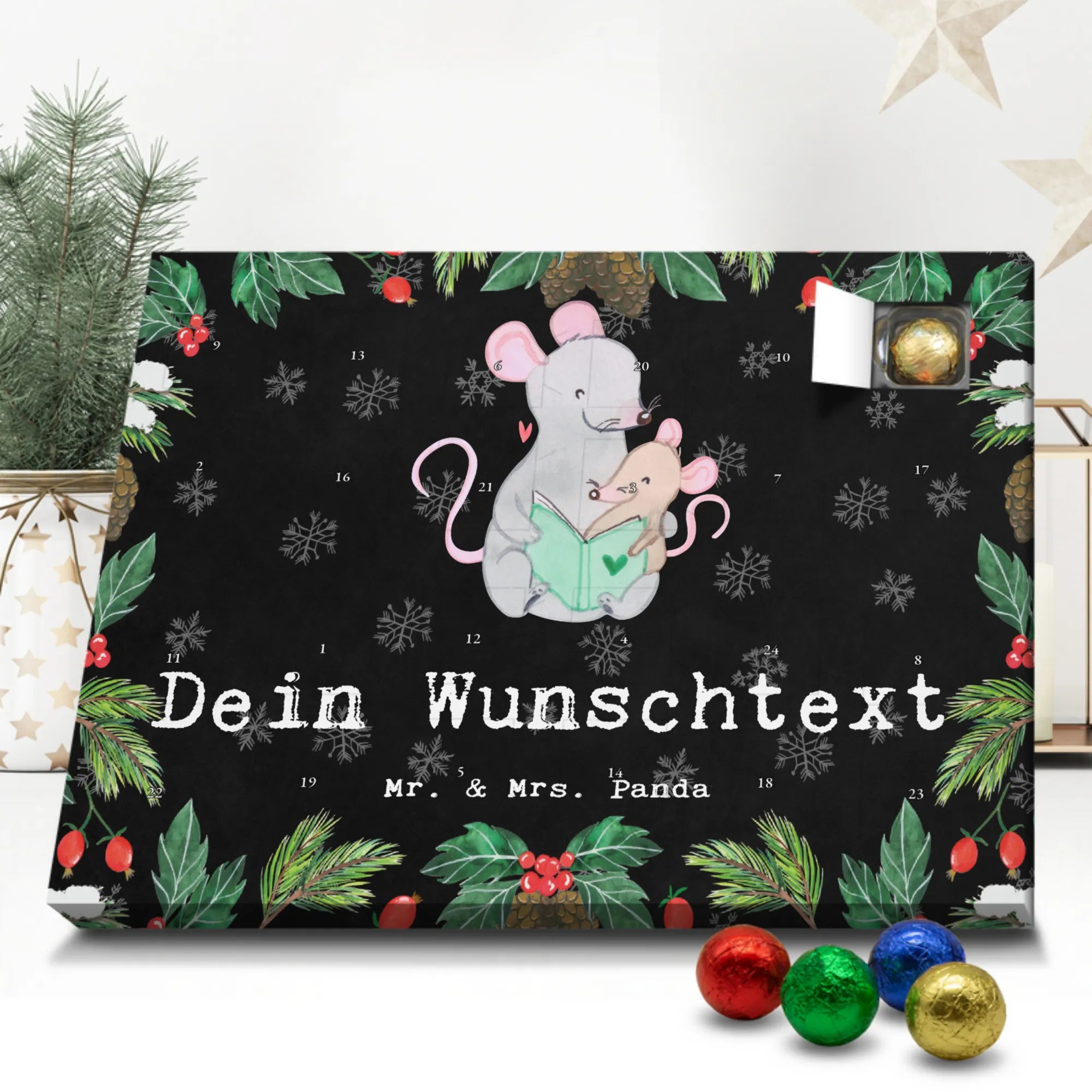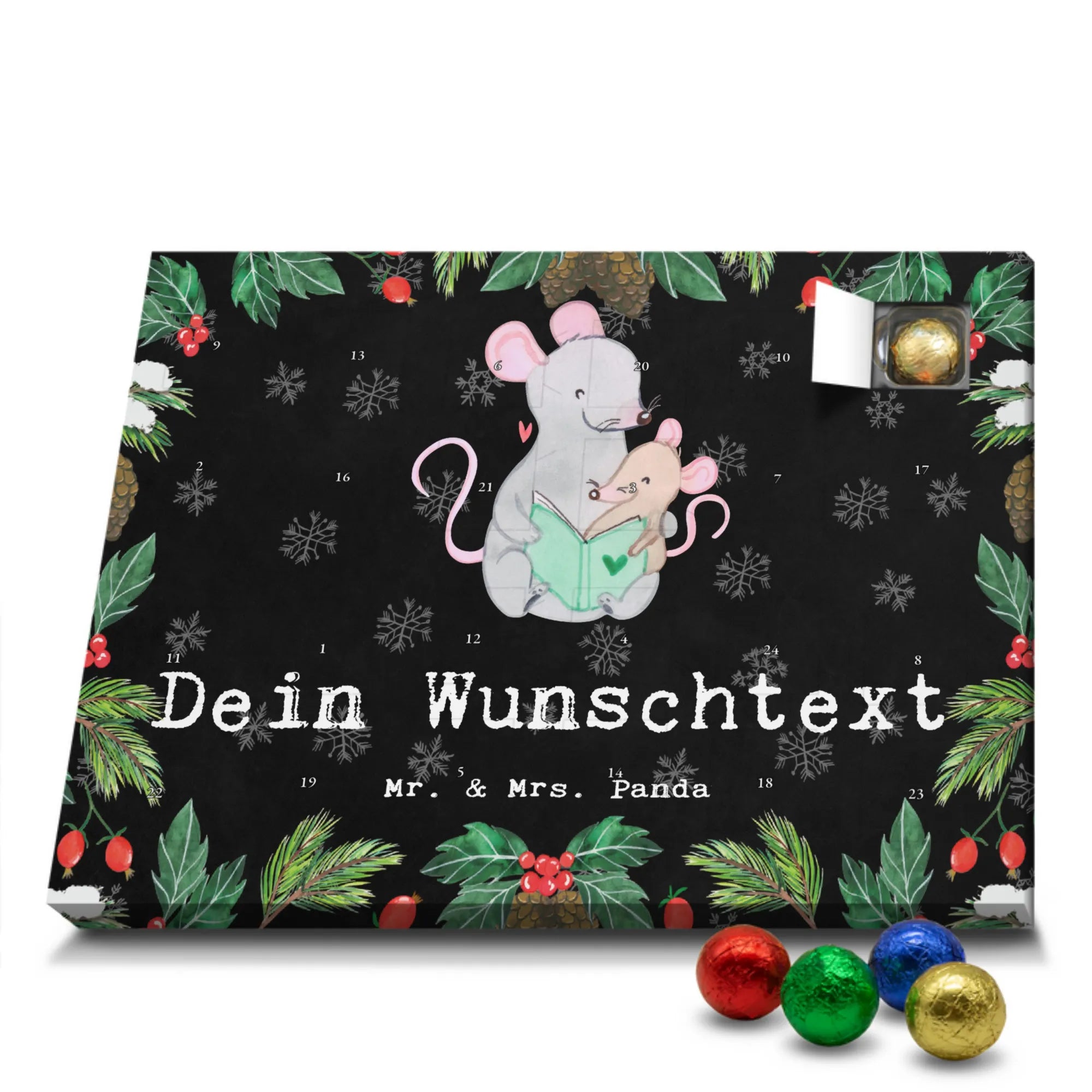 Mach Advent magisch: Gestalte jetzt deinen personalisierten Schoko Adventskalender und überrasche deine Liebsten mit einem individuellen Geschenk von Mr. & Mrs. Panda!