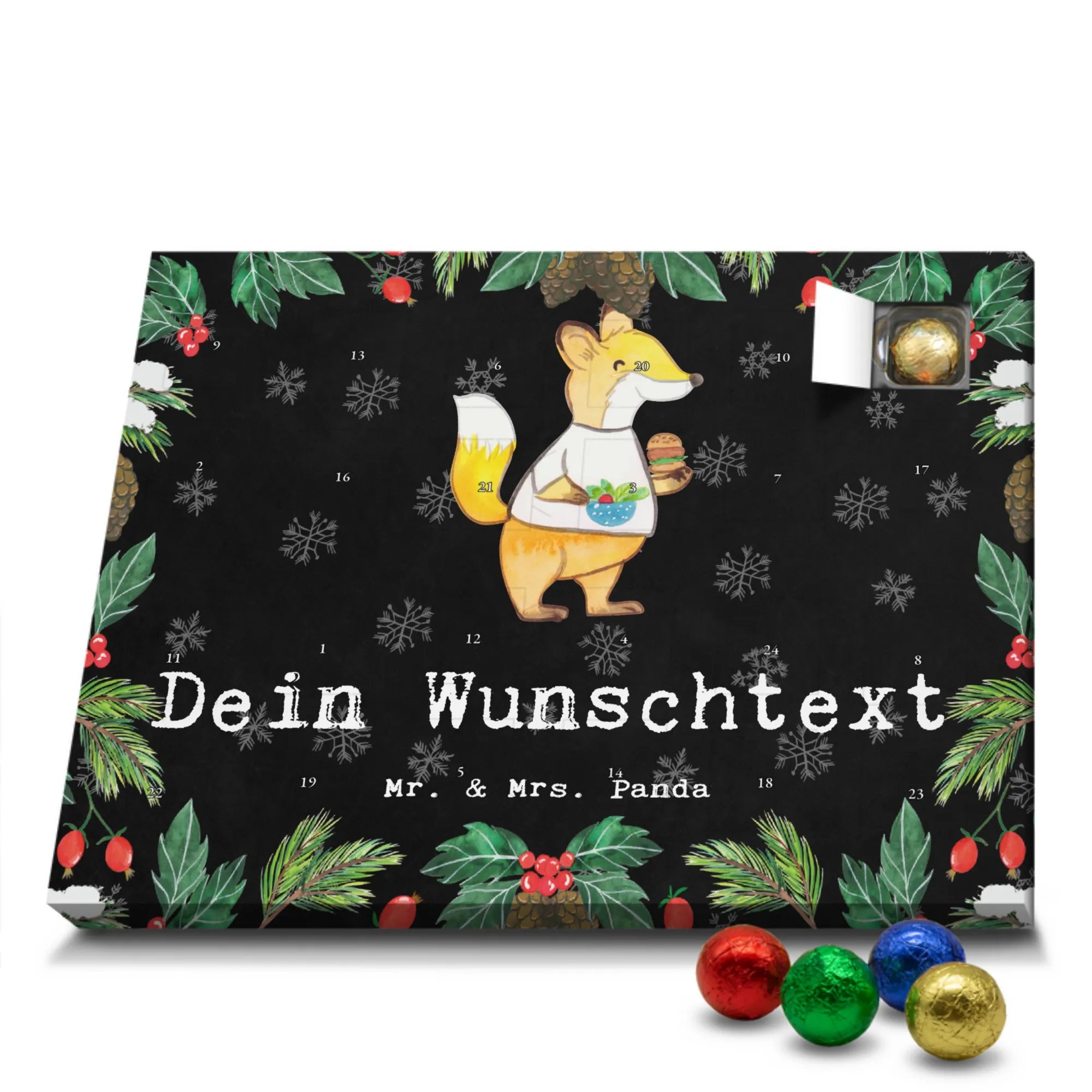 Gestalte Freude: Personalisiere deinen Schoko-Kalender und überrasche mit einem individuellen Adventsgruß von Mr. & Mrs. Panda!