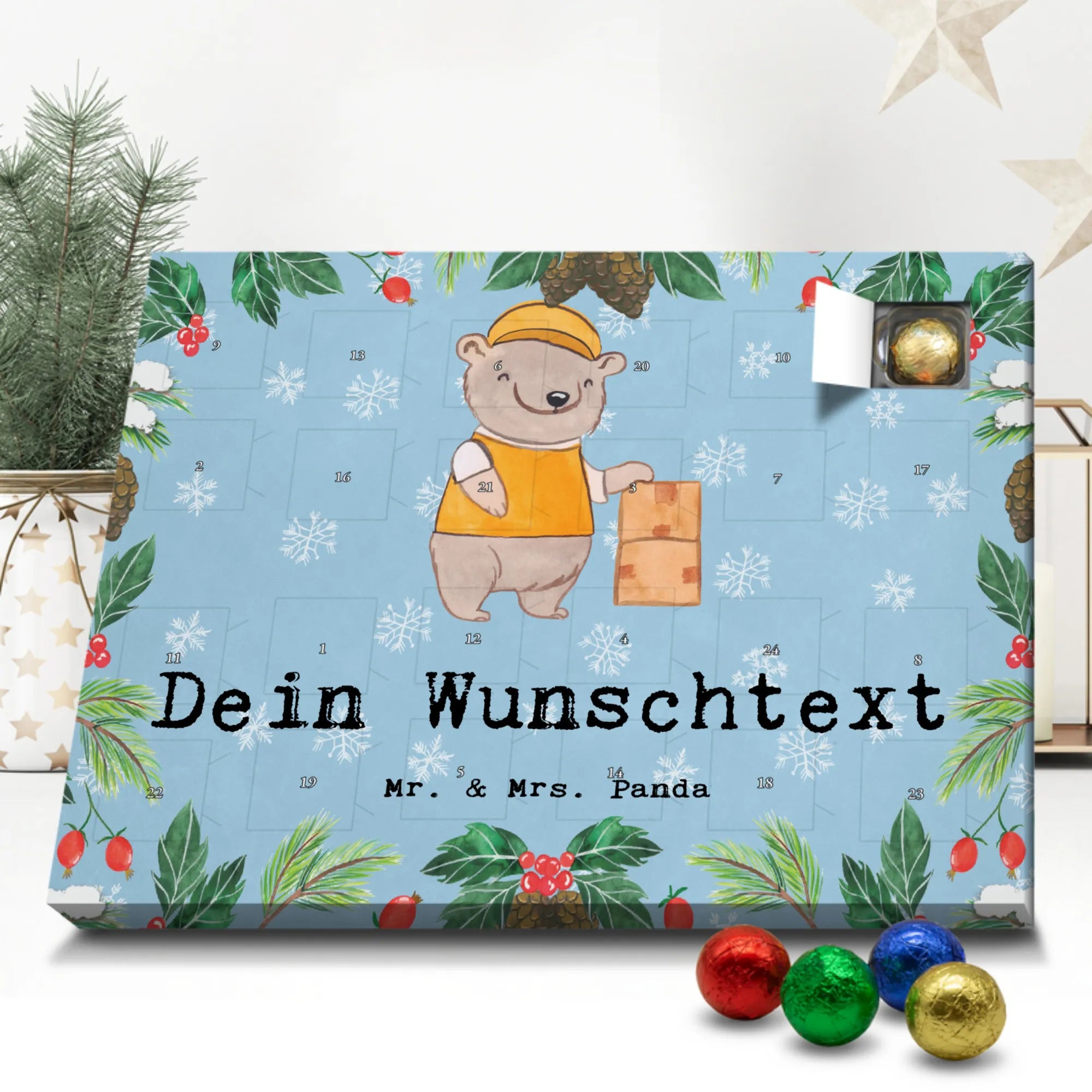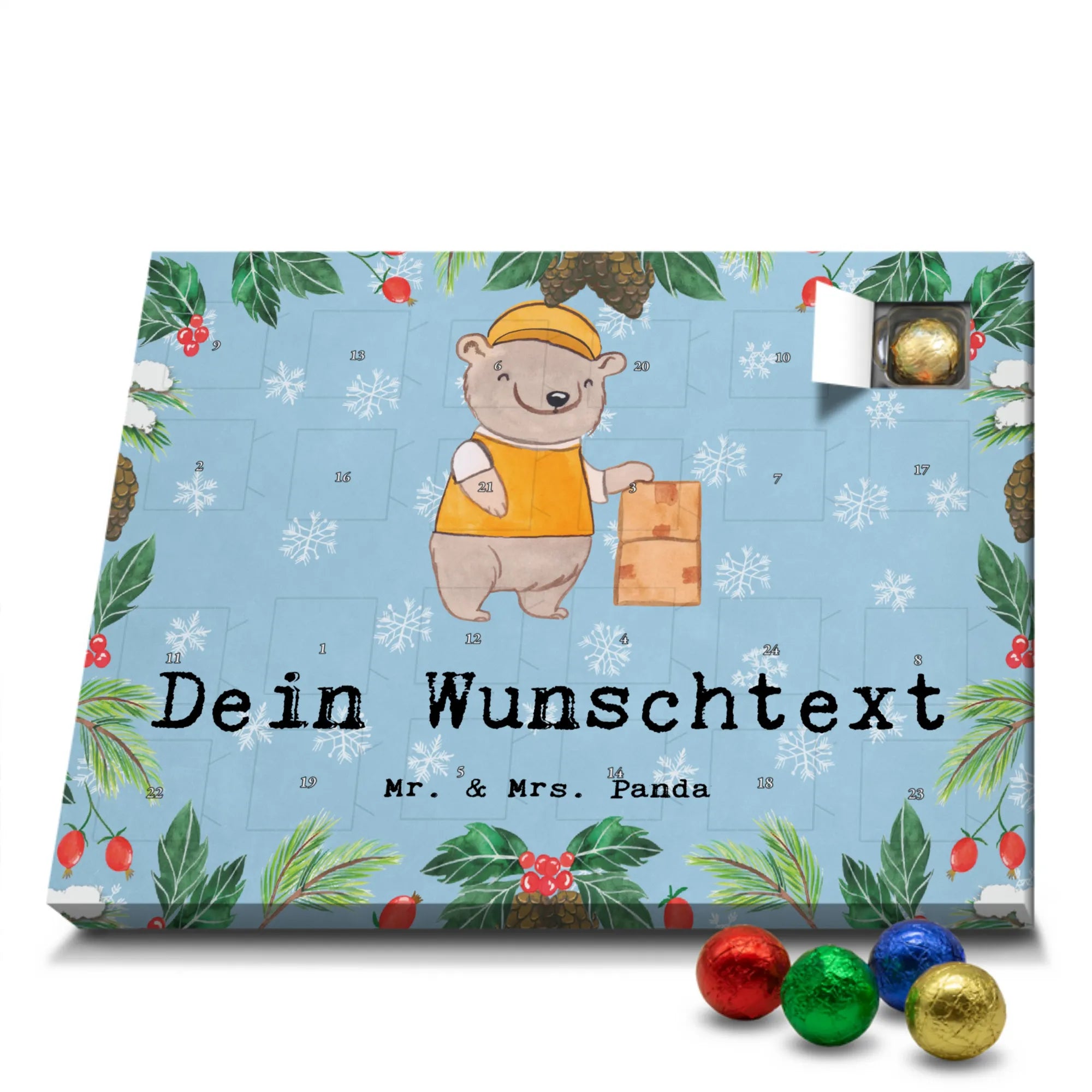 Personalisierter Schoko Adventskalender „Lagerarbeiter aus Leidenschaft“ von Mr. & Mrs. Panda – das ideale Geschenk für Lagerarbeiter, Fachlageristen, Lagerverwalter und alle Logistikhelden 🎁. Unser fröhlicher Bär mit Orangen im Helm schleppt Kisten und sagt mit einem Lächeln: Danke für deinen Einsatz. Der liebevolle Slogan „Lagerarbeiter aus Leidenschaft“ macht den Kalender zu einem ganz persönlichen Dankeschön.