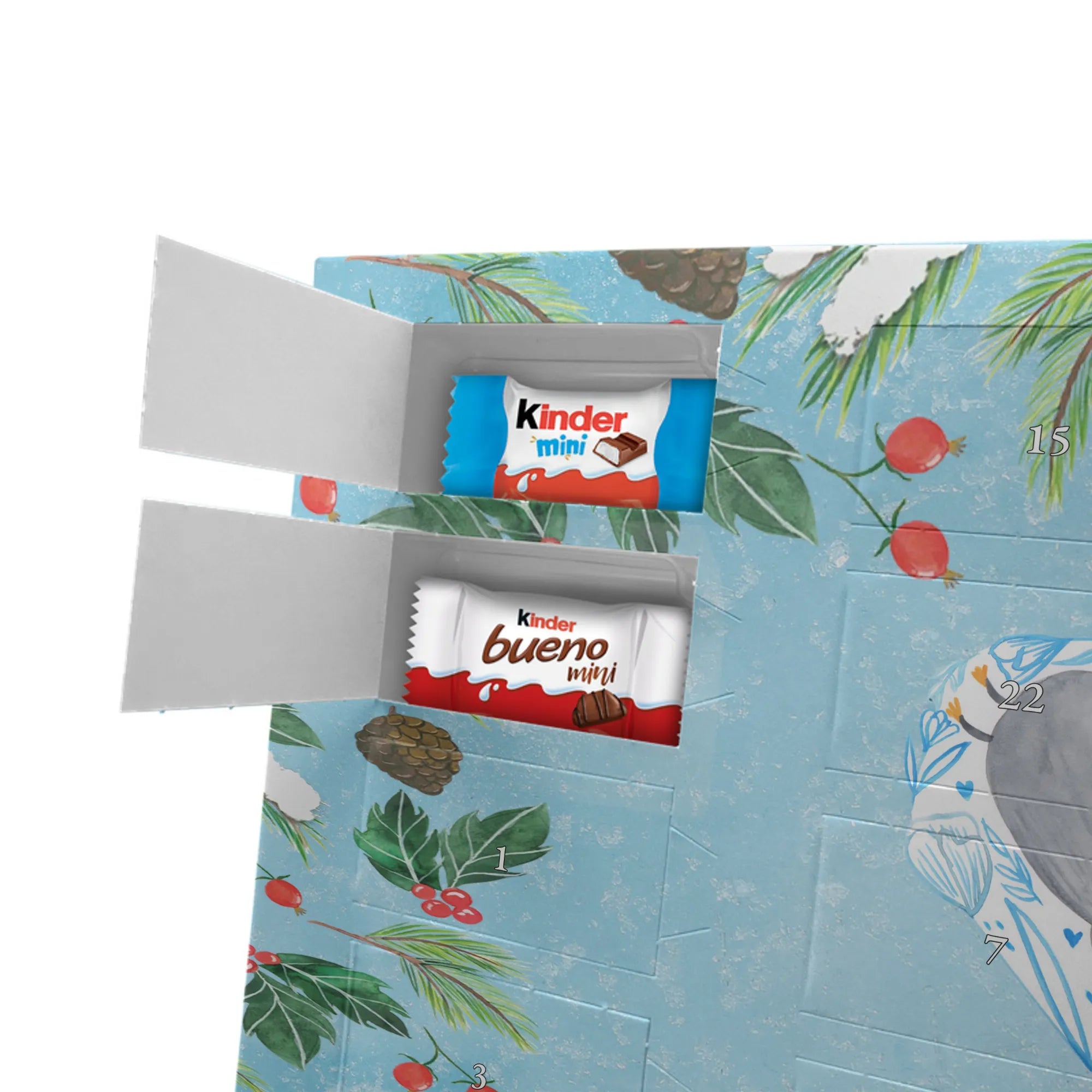 Personalisierter Schoko-Adventskalender von Mr. & Mrs. Panda – liebevoll gestaltet und ideal als individuelles Geschenk in der Adventszeit. Wir bedrucken den Kalender mit zauberhaften Motiven & herzlichen Sprüchen und personalisieren ihn mit deinem Wunschnamen oder Wunschtext. Die hochwertige Druckqualität kombiniert mit einer seidenmatten Oberflächenveredelung sorgt für ein edles Erscheinungsbild, und die bedruckten Seitenflächen geben dem Motiv zusätzlichen Charme. Der Kalender kann aufgehängt oder aufgestellt werden, sodass du ihn flexibel platzieren kannst. Gefüllt ist der Kalender mit Celebrations, die 24 hochwertige Überraschungen in 8 verschiedenen Sorten beinhalten: Maltesers, Mars, Snickers, Twix, Milky Way, Bounty, Galaxy und Galaxy Caramel. Maße: 325 mm x 225 mm x 27 mm – handlich und doch großzügig für die kleinen Leckereien hinter den Türchen. Ob für Kinder, Partner oder beste Freunde: dieser personalisierte Schoko-Adventskalender macht das Warten auf Weihnachten bunter und leckerer. Verschenke eine persönliche Erinnerung und jeden Tag ein kleines Schokoladen-Glück!
