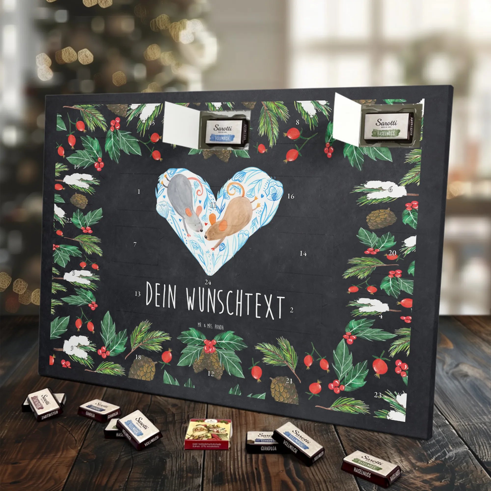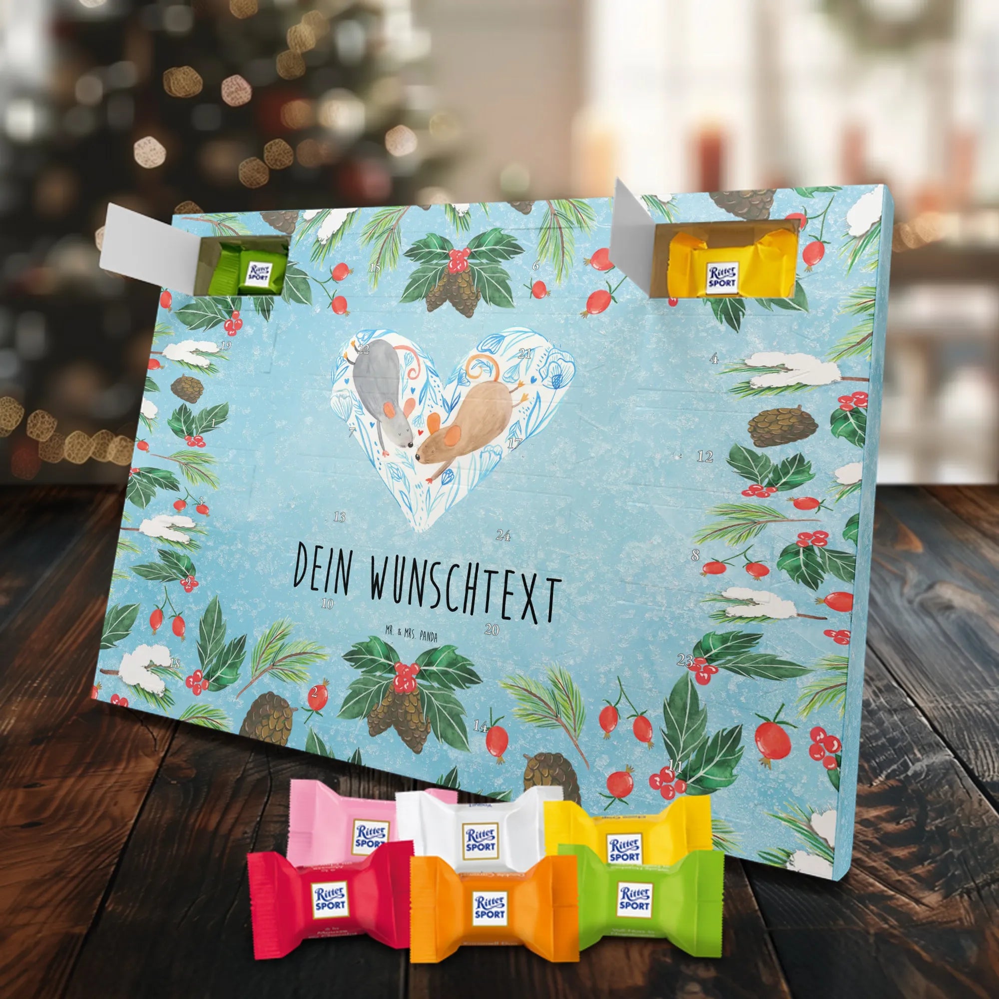 Adventskalender mit Namen Mäuse Herz - Classic - Eisblau