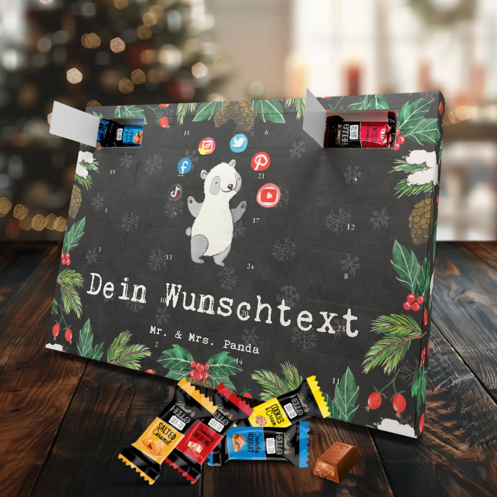 🐼 PERSONALISIERTER SCHOKO-ADVENTSKALENDER: Mit Wunschtext, bedruckt mit Mr. & Mrs. Panda Motiven, gefüllt mit MARKENNAMEN Schokolade.