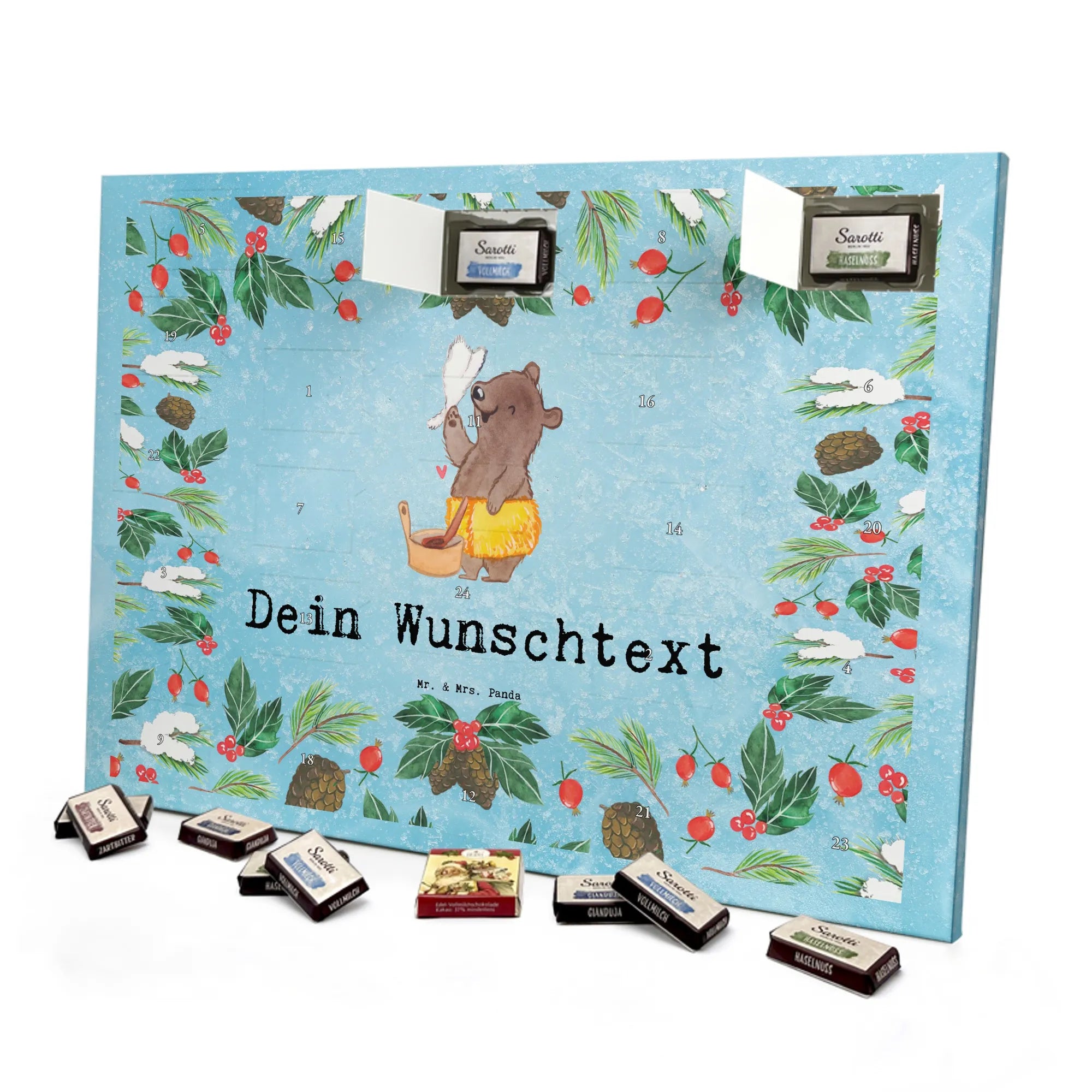🐼 PERSONALISIERTER KALENDER: Liebevoll bedruckt, mit Namen personalisierbar, gefüllt mit MARKENNAMEN Schokolade, Maße 233×178×24 mm.