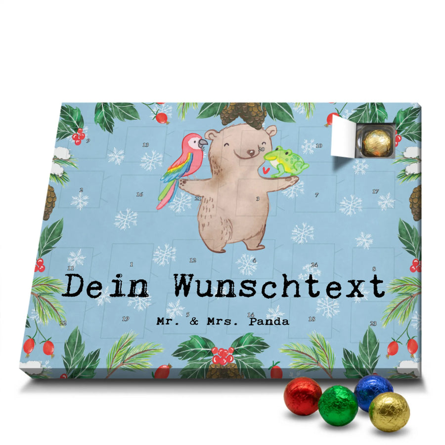 🐼 PERSONALISIERTER SCHOKO-ADVENTSKALENDER: Mit Wunschtext, bedruckt mit Mr. & Mrs. Panda Motiven, gefüllt mit MARKENNAMEN Schokolade.