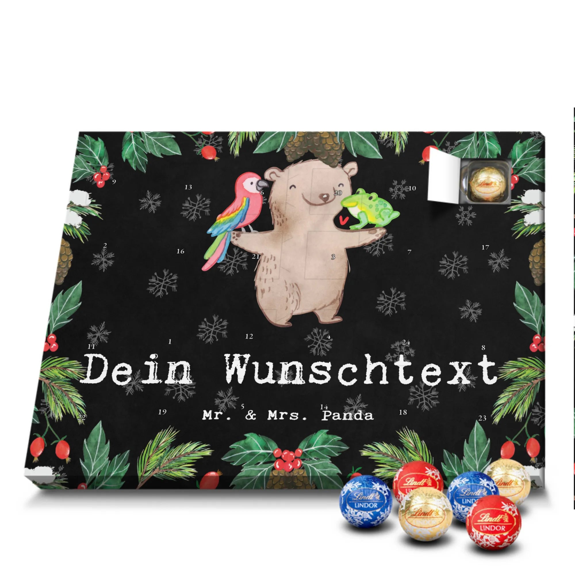 🐼 Adventskalender mit Namen, Mr. & Mrs. Panda Druck, gefüllt mit Lindt Hello.