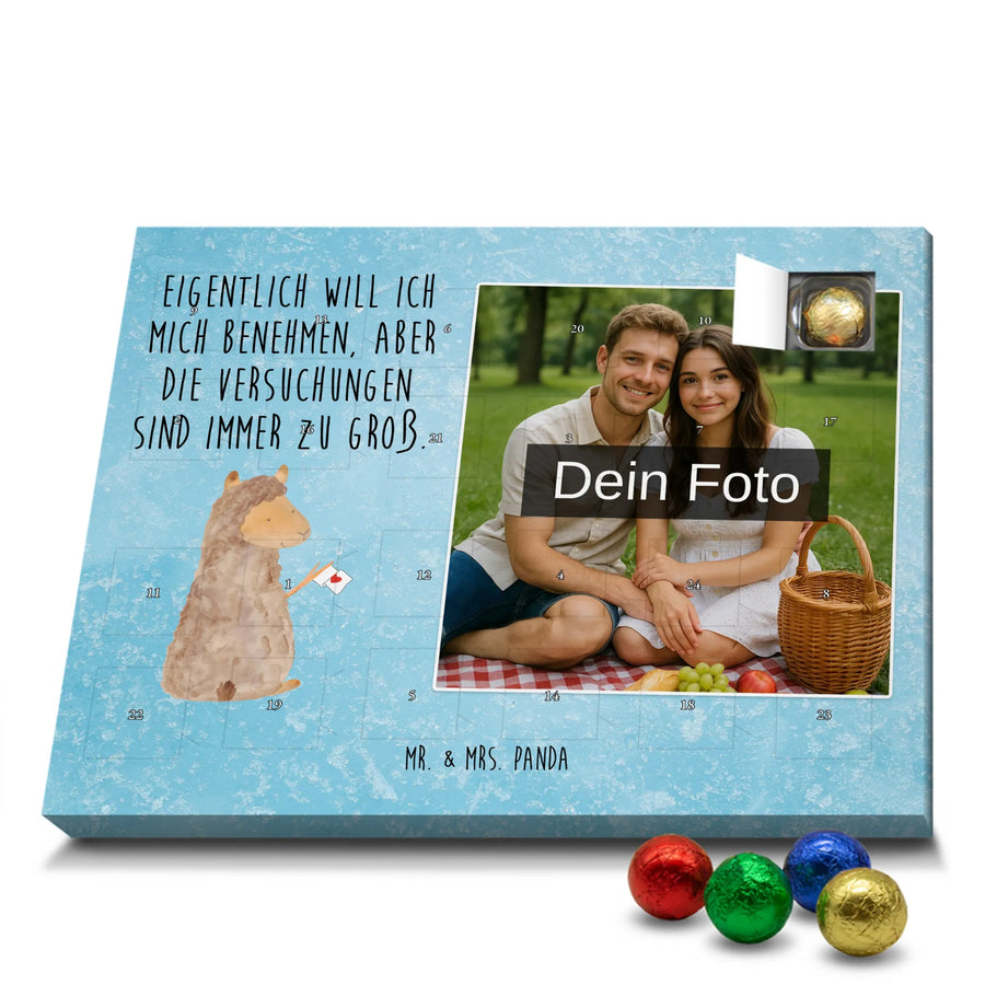 Personalisierter Schoko Foto Adventskalender Alpaka Fahne - Classic - Eisblau