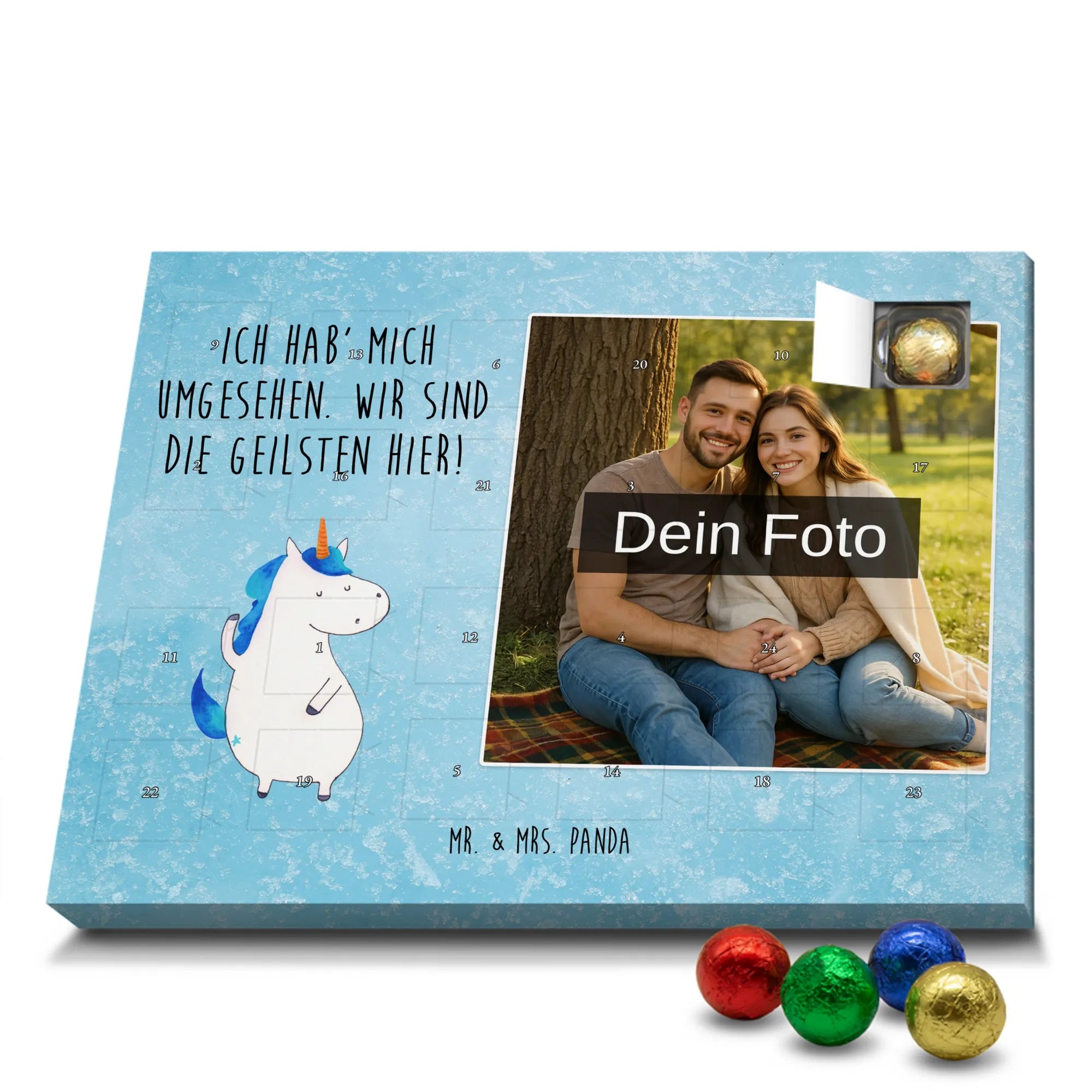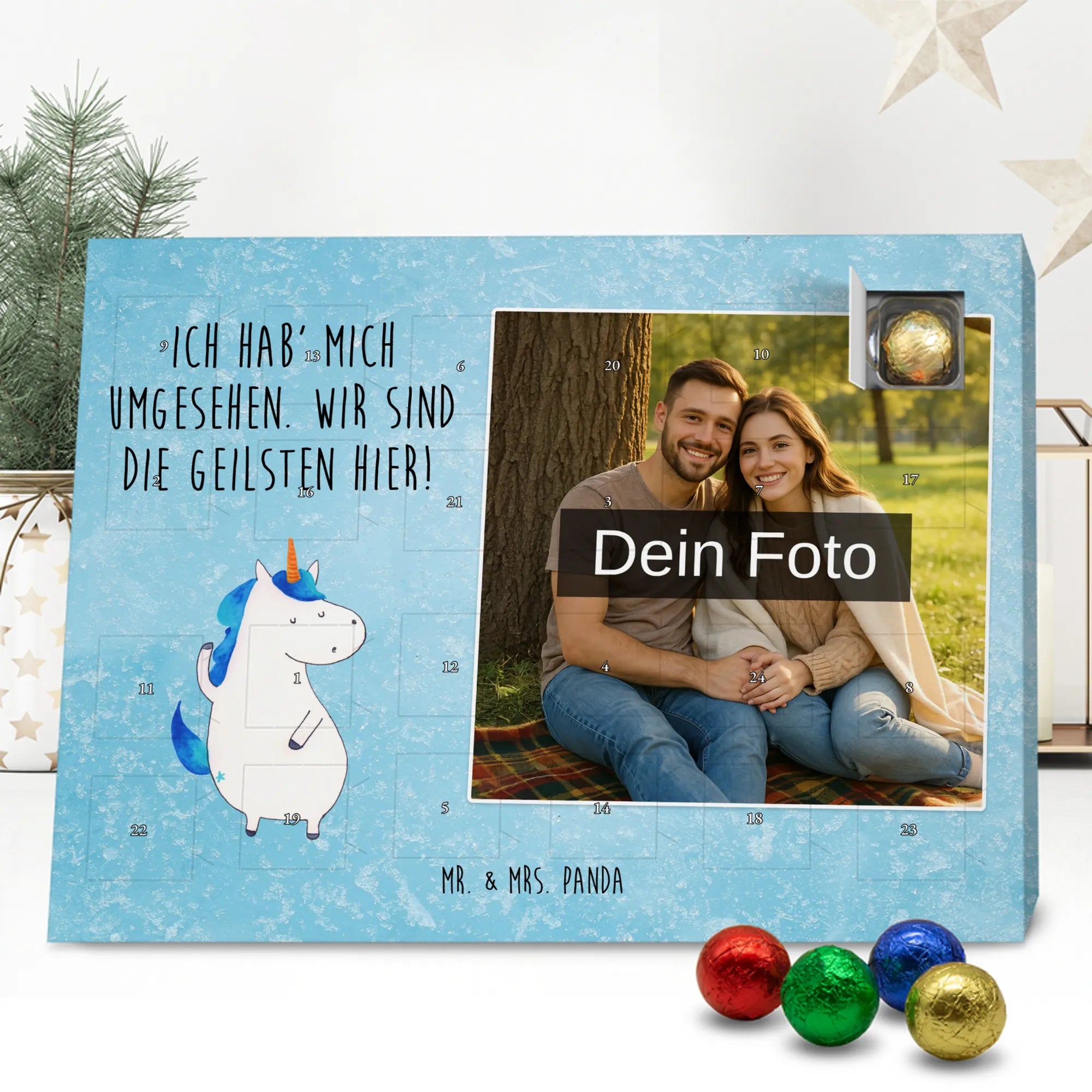Personalisierter Schoko Foto Adventskalender Einhorn Mann - Classic - Eisblau