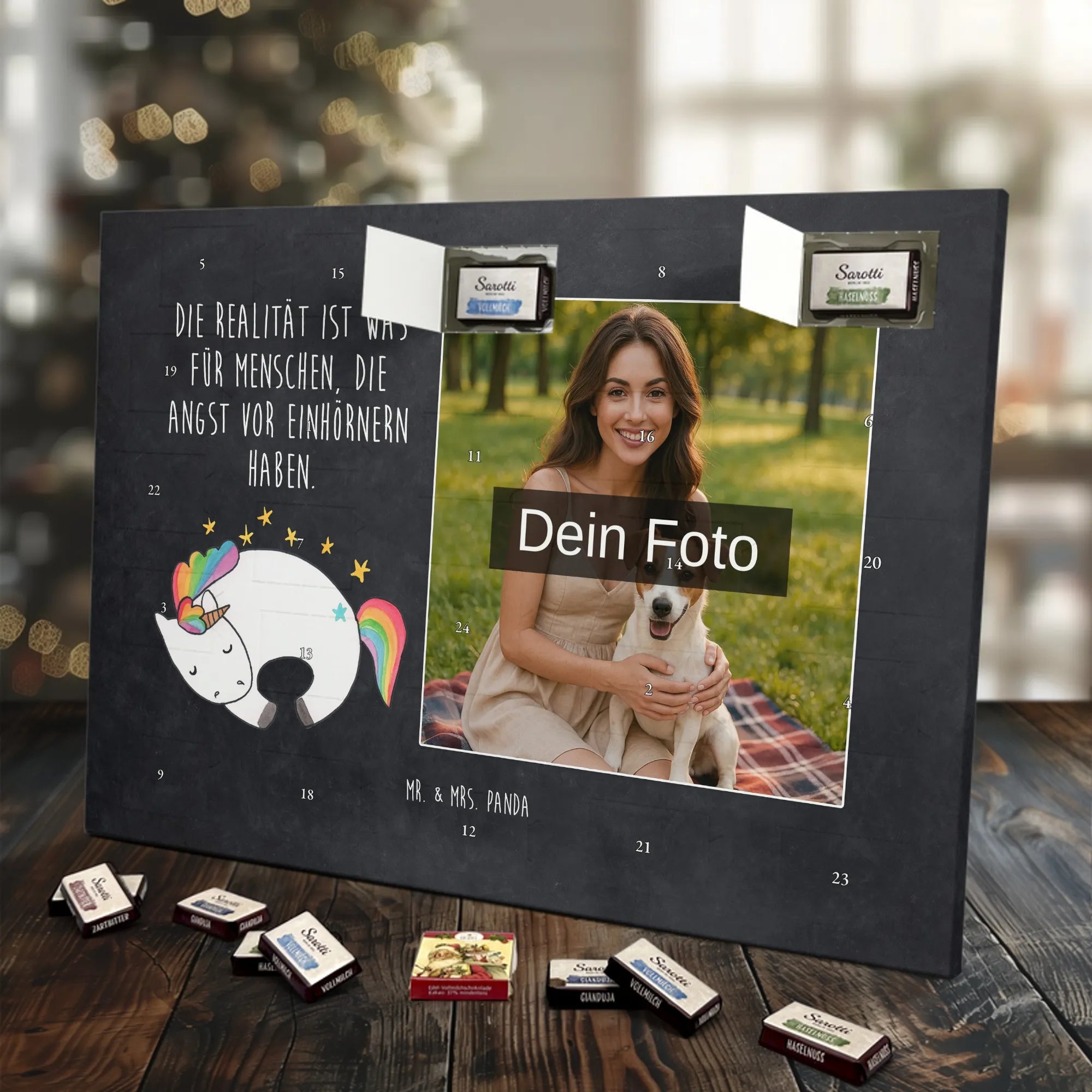 Personalisierter Schoko Foto Adventskalender Einhorn Nacht - Classic - Eisblau