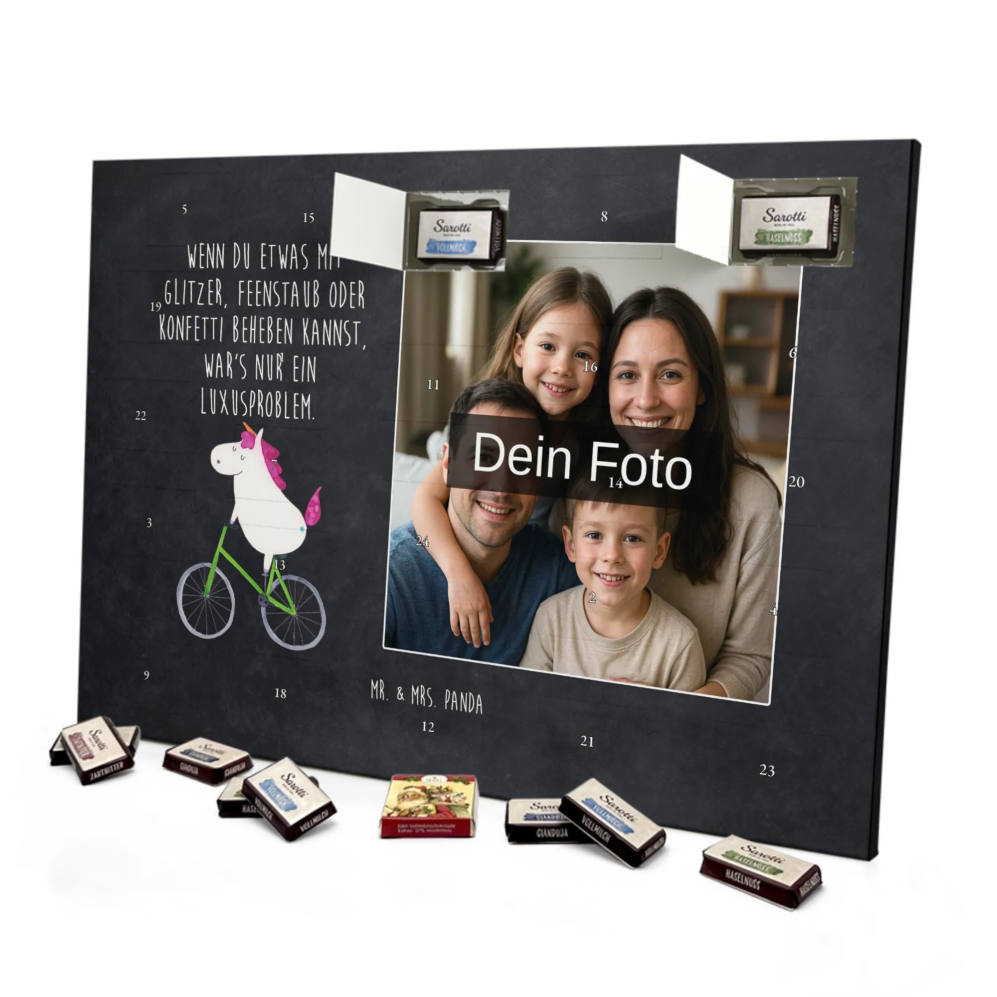Schenke jeden Tag ein Lächeln – erstelle jetzt deinen personalisierten Schoko Foto Adventskalender von Mr. & Mrs. Panda und überrasche deine Liebsten.